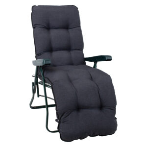 Lamami kėdė BADEN-BADEN su sėdynės užvalkalu. Kėdės rėmas pagamintas iš metalo ir padengtas žalia milteline danga. Sėdynę ir atlošą laiko zigzaginės spyruoklės. Kėdės atlošas ir kojų atrama yra reguliuojami. Kojų atrama juda sinchroniškai su atlošu. Norėdami sureguliuoti atlošą, pakelkite porankius, pasirinkite tinkamą padėtį ir užfiksuokite porankius. Galimos penkios skirtingos padėtys. Sulankstytą kėdę lengva pasiimti su savimi arba laikyti. Kėdės užvalkalas BADEN-BADEN 48×165 cm, rudai pilkos spalvos. Užvalkalo medžiaga: 100 % poliesteris. Užpildas: pluoštas. PRIEŽIŪRA: nerekomenduojama skalbti skalbimo mašinoje. Bendrieji kėdės matmenys: 57x86xH100 cm. Sėdynės plotis 47 cm, gylis 50 cm, aukštis 43 cm. Ribinis svoris 100 kg. Sulankstytos kėdės matmenys 57x88x14cm. PRIEŽIŪRA: kėdės užvalkalą nerekomenduojama skalbti skalbimo mašinoje.