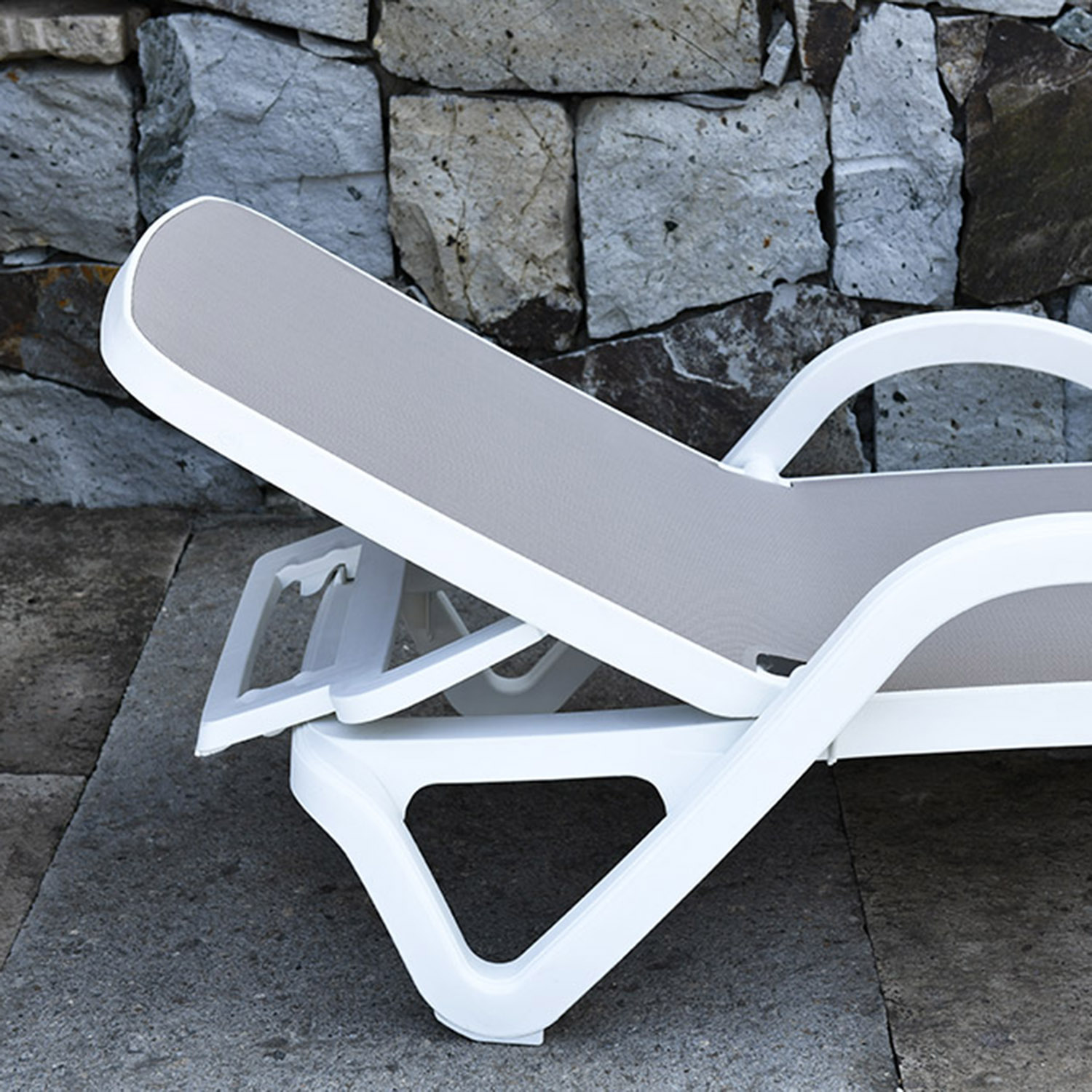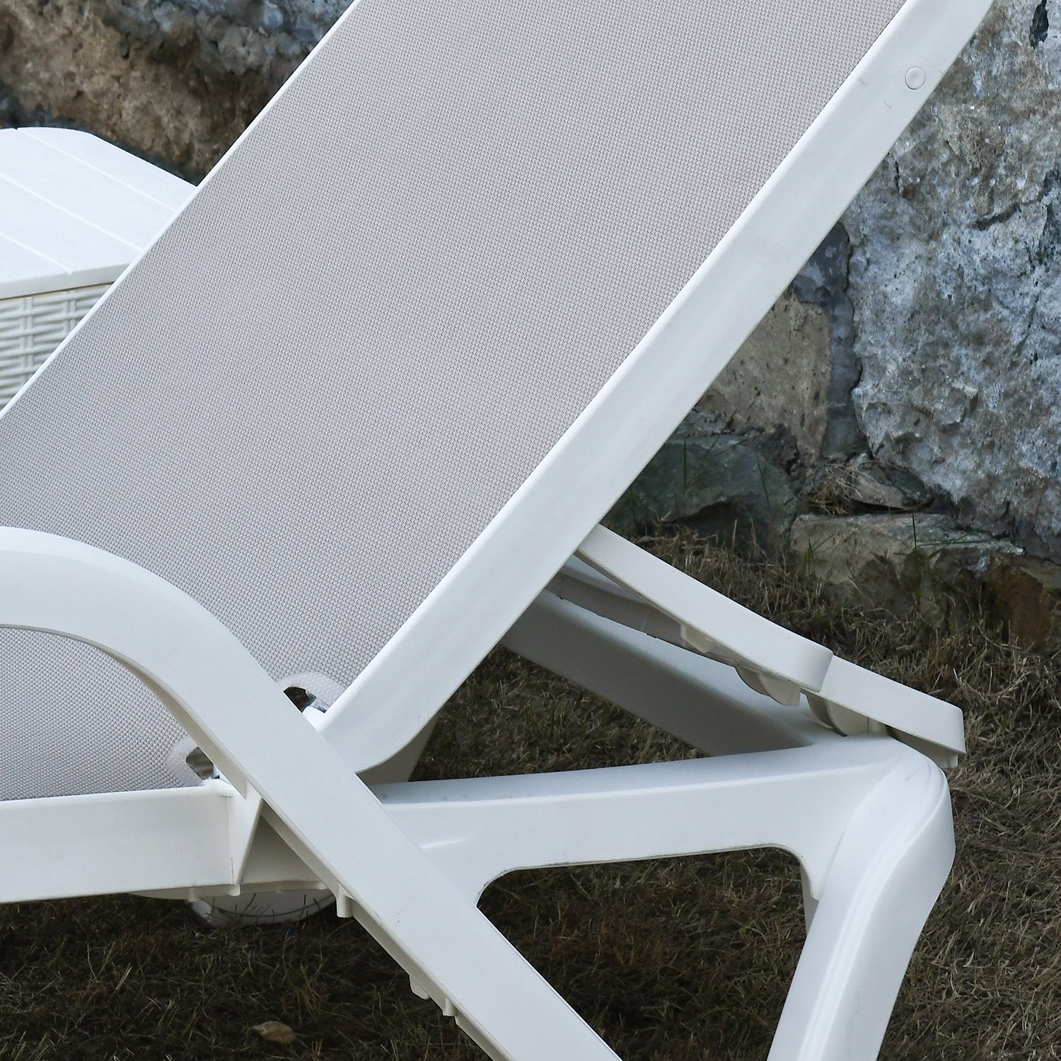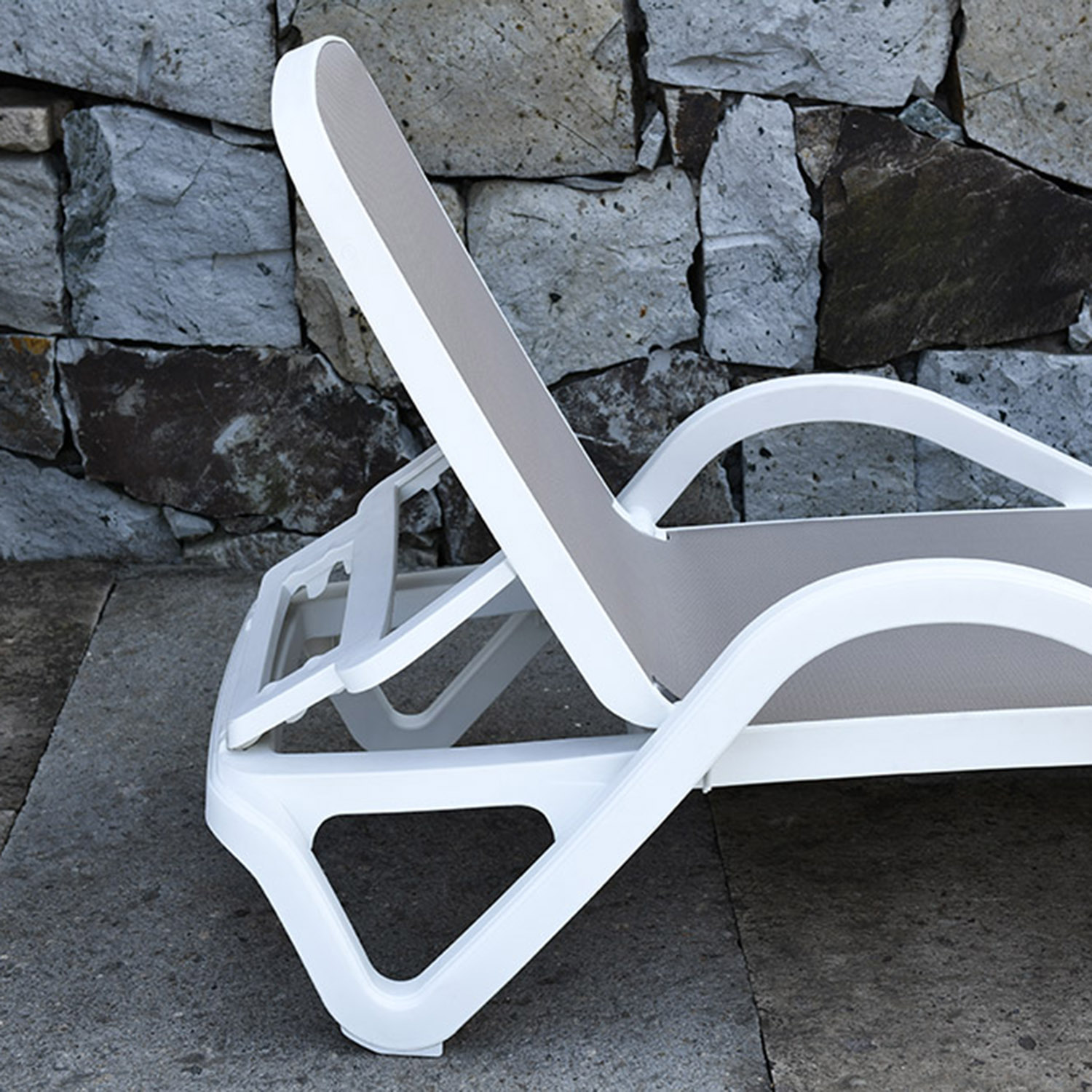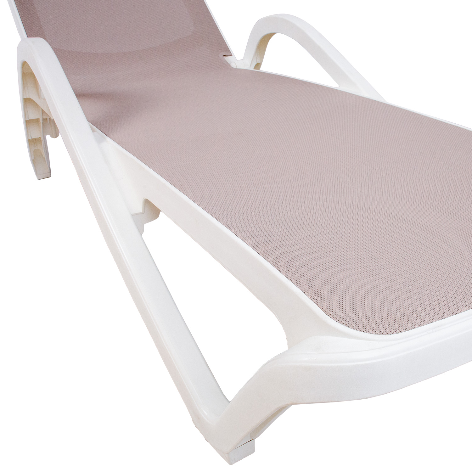 Lamami kėdė RESORT 197×71,3xH46,5cm, smėlio spalvos plastikas. Kėdės atlošas reguliuojamas 4 padėtimis. Gaminys atsparus atmosferos poveikiui ir UV spinduliams.