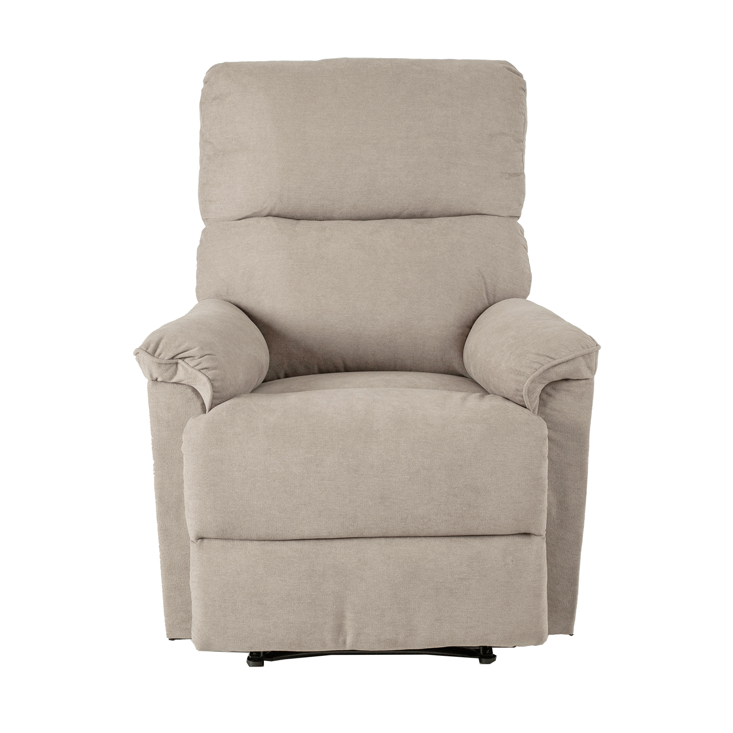 Fotelis GUSTAV manual recliner 80x92xH104cm, taupe spalvos. Kėdė su rankiniu mechanizmu kojų atramos padėčiai keisti. Pakėlus kojų atramą, atlošas sklandžiai juda kartu su ja. Norėdami pakelti kojų atramą, patraukite aukštyn svirtį, esančią sėdynės išorėje. Stumtelėjus kojų atramą žemyn, ji automatiškai užsifiksuoja pradinėje padėtyje. Užvalkalo medžiaga: 100 % poliesterio audinys, Martindale vertė nuo 10 000 iki 15 000. Rėmas: medis, metalas. Apmušalas: poliuretano putos 24 kg/m³. Bendrieji fotelio matmenys: 80x92xH104 cm. Sėdynės plotis 43 cm, sėdynės gylis 43 cm, sėdynės aukštis 49 cm. Atlošo aukštis 66 cm. Porankių aukštis nuo žemės 60 cm.