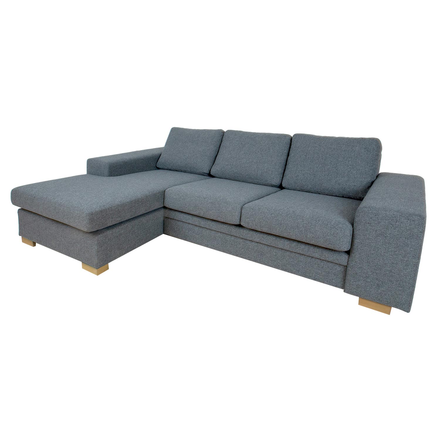 Kampinė sofa DAGMAR pilka. Ši kampinė sofa su plačiais porankiais ir minkštomis pagalvėlėmis yra jauki ir kviečianti! Rėmas pagamintas iš beržo faneros ir medžio masyvo. Sėdėjimo komfortą užtikrina zigzago formos pakaba. Visos sėdynių pagalvėlės yra laisvos. Sėdimųjų pagalvių viduje yra patvari HR fanera, padengta minkštomis poliesterio putomis. Laisvos atlošo pagalvėlės užpildytos smulkintu porolonu. Sėdynės ir atlošo pagalvių užvalkalai yra nuimami ir skalbiami. Sofos korpusas ir pagalvėlės aptrauktos aukštos kokybės apmušalų audiniu, Martindale vertė 90 000 – 100 000. Sofos kampas yra universalus, jį galima pakelti į kairę arba į dešinę. Bendrieji sofos matmenys yra 237×90/146xH86 cm. Sėdynės aukštis 44 cm. Sėdynės gylis 58/113 cm. Kampo plotis 85 cm, porankio plotis 28 cm. Sėdimosios pagalvės 60x70x15cm/2vnt, 85/60x127x15cm. Atlošo pagalvių matmenys 60x45x18cm/3vnt. Sofa turi medines kojas. Sofa pagaminta Estijoje.