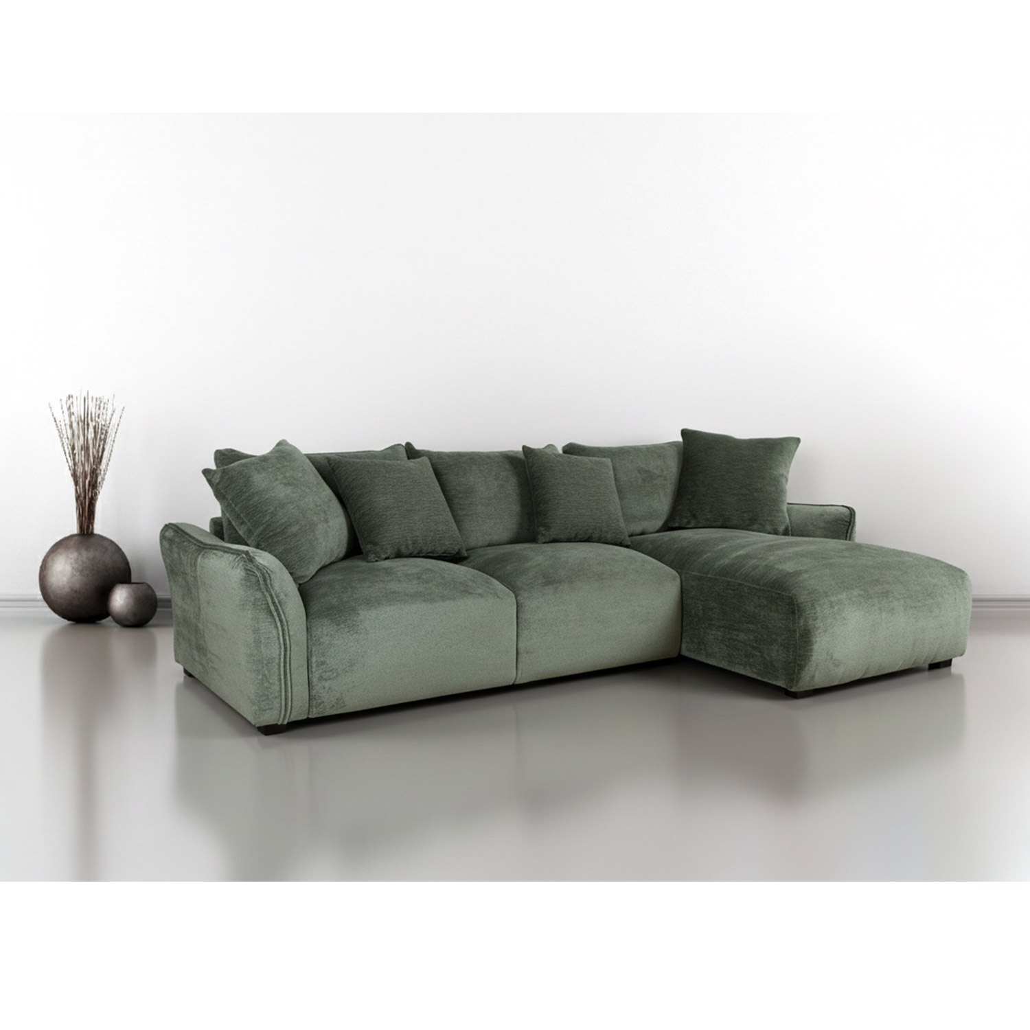 A soft and spacious corner sofa covered in luxurious velvet fabric is a real eye-catcher in any living room.