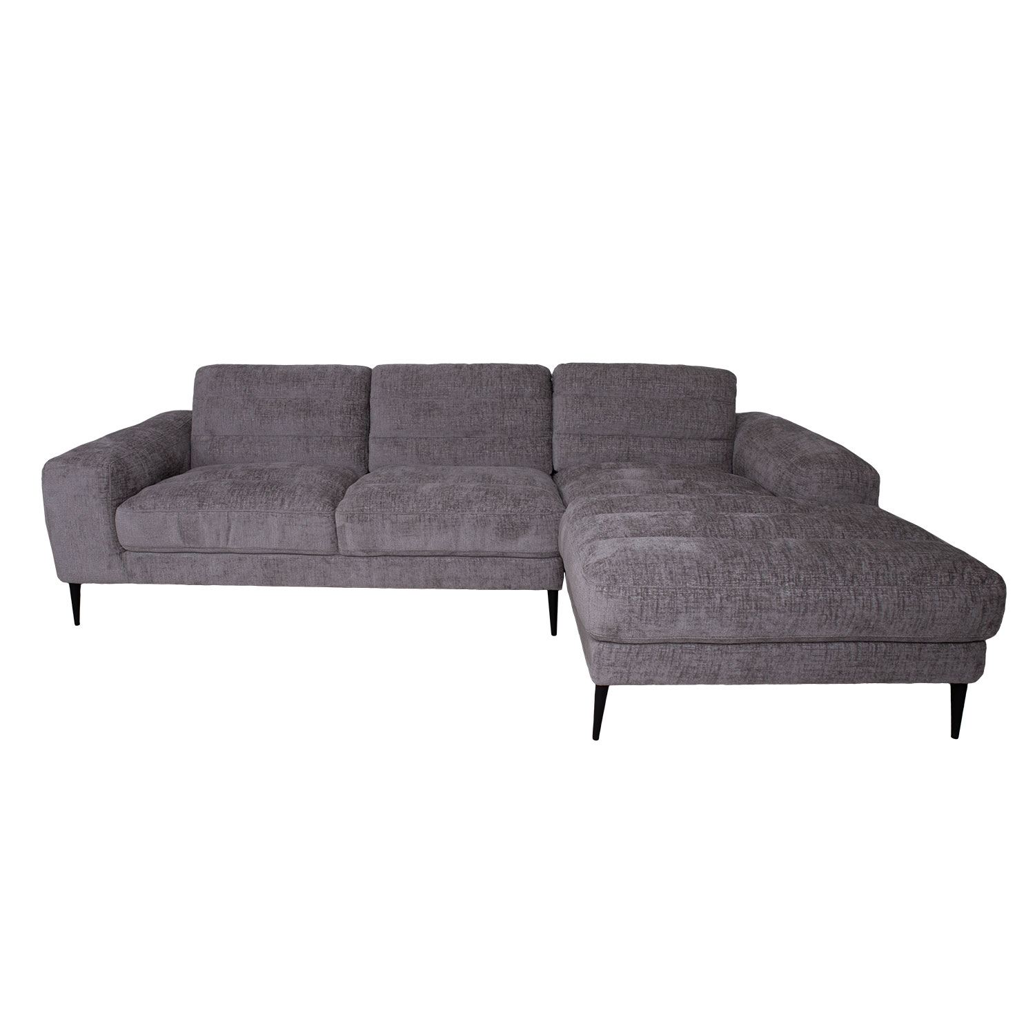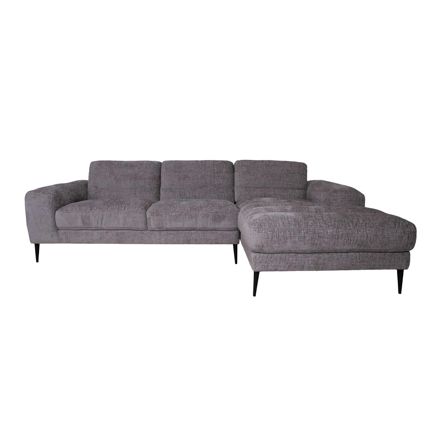Kampinė sofa KRISTY dešinysis kampas, pilka. Rėmas pagamintas iš kietos faneros ir MDF. Sėdėjimo komfortą užtikrina zigzago formos pakaba ir apmušalas iš patvarių poliuretano putų (PU 30 kg/m³). Sofa visiškai aptraukta aukštos kokybės poliesterio audiniu. Bendrieji sofos matmenys yra 267×97/160xH80 cm. Sėdimosios dalies gylis 60 cm, sėdimosios dalies aukštis 49 cm. Porankio aukštis nuo žemės 60 cm, porankio plotis 28 cm. Sofa turi juodo metalo koją H17cm.