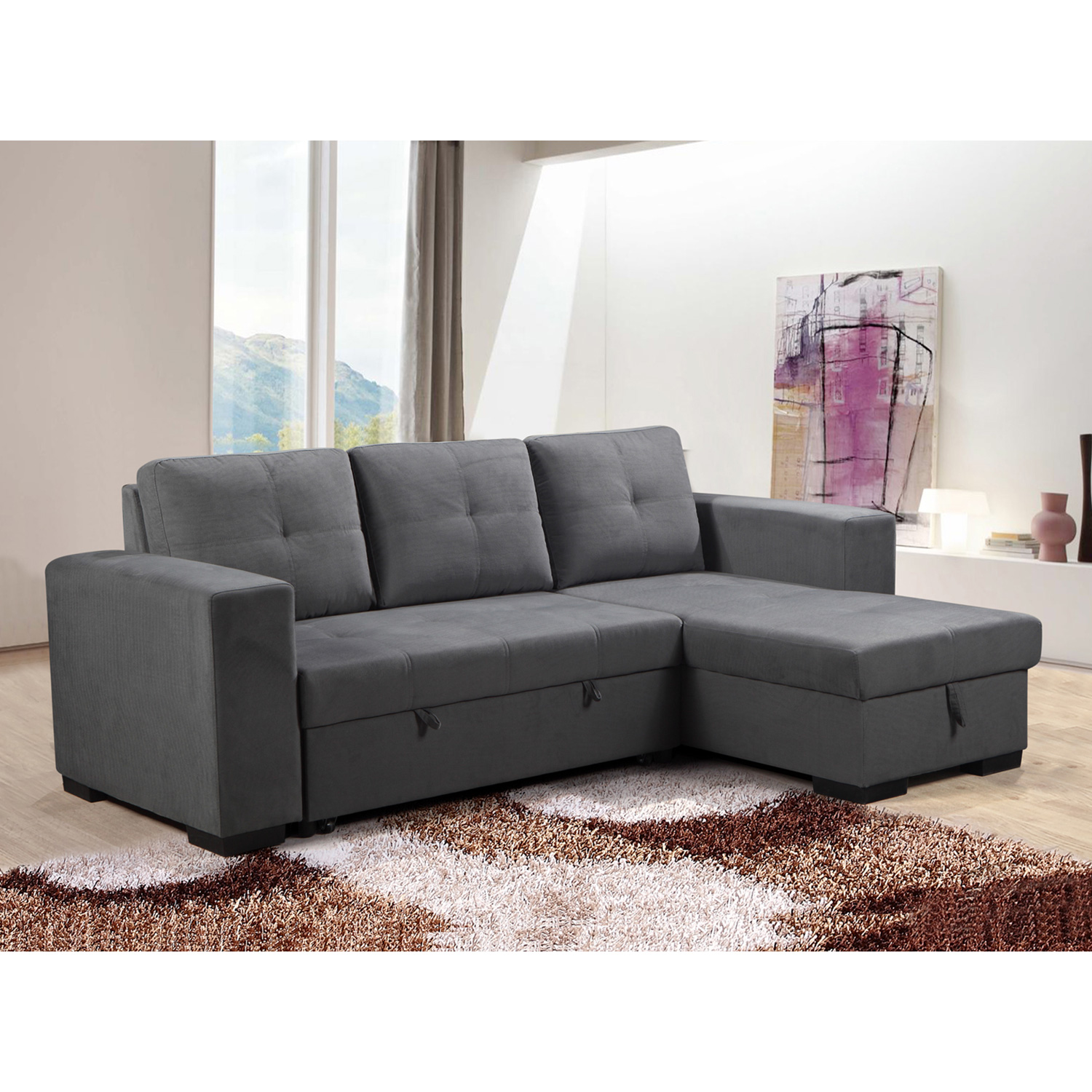 Kampinė sofa-lova CARITA tamsiai pilka