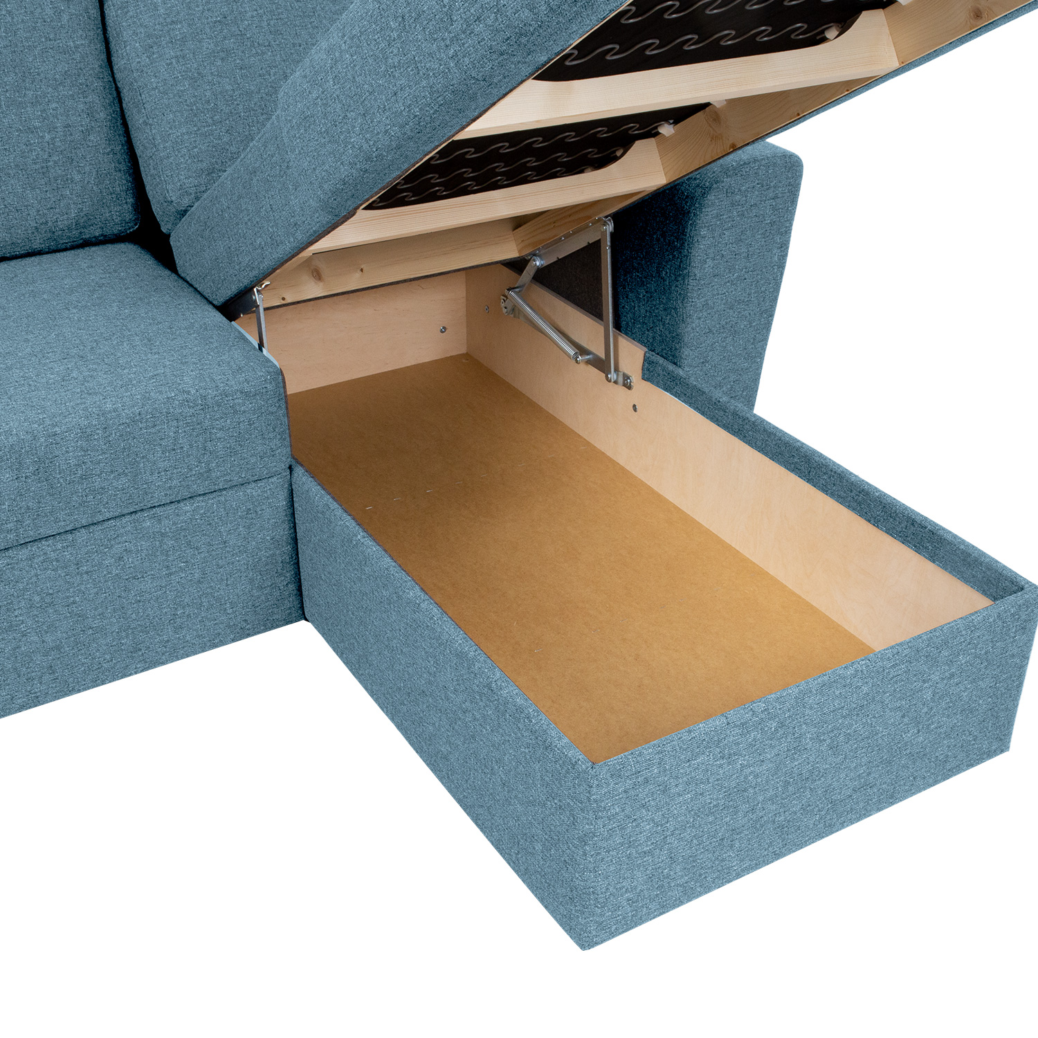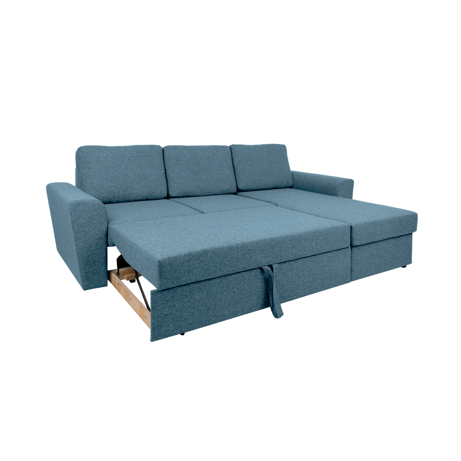 Kampinė sofa lova INGMAR šviesiai mėlyna. Iš pirmo žvilgsnio paprasta, laikui nepavaldi sofa-lova gal ir nėra kambario žvaigždė, tačiau dėl savo patogumo ir funkcionalumo ji greitai tampa šeimos numylėtine. Rėmas pagamintas iš beržo faneros ir medžio masyvo. Sėdėjimo patogumą užtikrina zigzago formos pakaba ir patvarūs porolono apmušalai. Atviros nugaros pagalvėlės užpildytos smulkintu porolonu. Atlošo užvalkalai nuimami ir skalbiami. Sofa visiškai aptraukta aukštos kokybės apmušalų audiniu, Martindale vertė 90 000 – 100 000. Po kampine sofos dalimi yra didelis skalbinių skyrius. Sofa yra išskleidžiama ir prireikus gali būti naudojama kaip lova. Norėdami ją išskleisti, ištraukite po sėdyne esantį prailgintuvą ir pakelkite jį iki to paties lygio kaip ir sėdynę. Sofa-lova skirta naudoti kaip svečių lova, o ne kaip kasdienė miegamoji platforma. Visada naudokite čiužinio užvalkalą. Sofos kampas yra universalus, ją galima pakelti į kairę arba į dešinę. Bendrieji sofos matmenys yra 242×168/92xH92 cm. Sofos aukštis iki rėmo krašto 73 cm. Sėdynės aukštis 45 cm. Sėdynės gylis 58 cm. Atlošo pagalvėlės matmenys 64x48x18cm. Miegamojo ploto matmenys atidarius sofą – 147×196 cm. Sofos kojos yra iš juodo plastiko. Sofa pagaminta Estijoje.