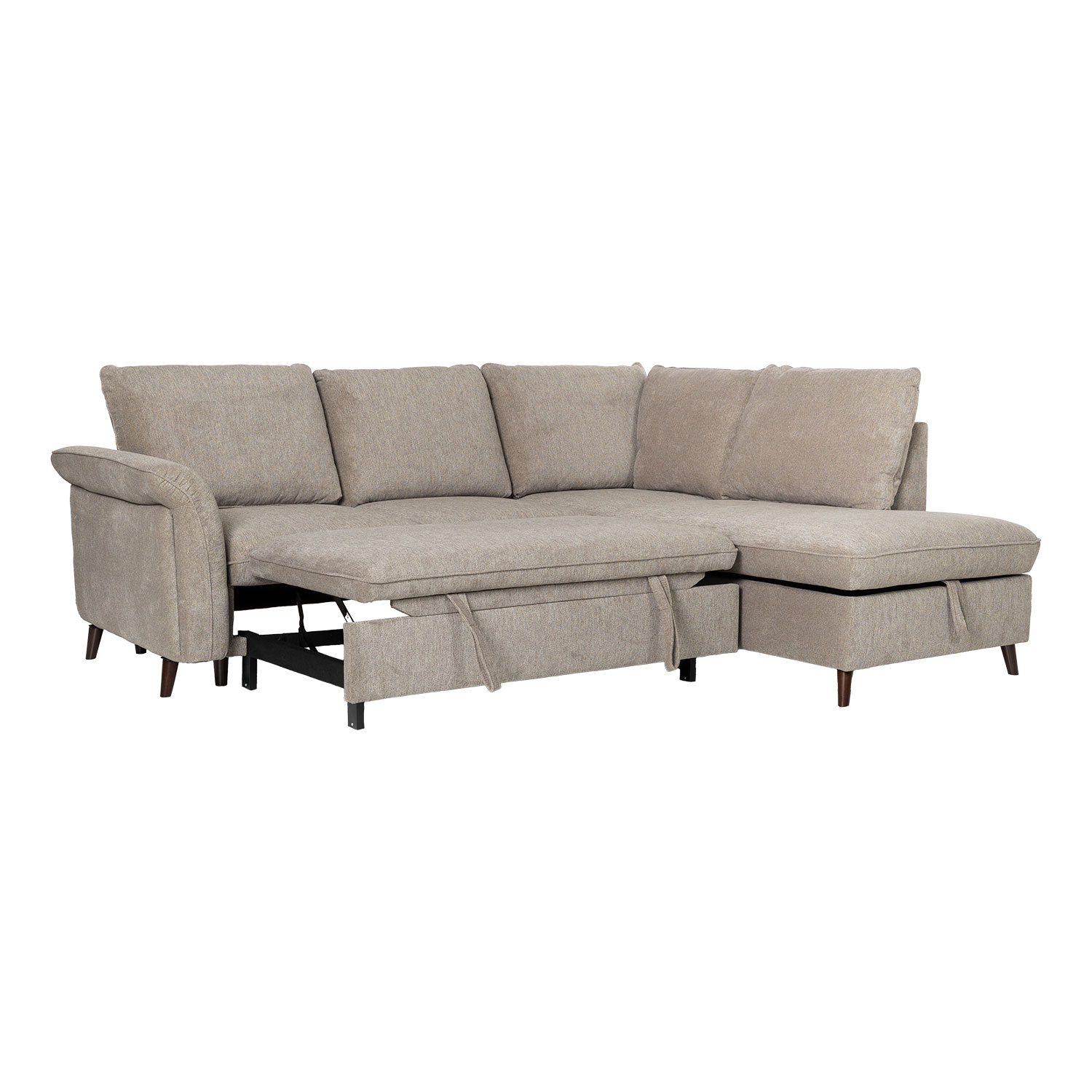 Kampinė sofa-lova LINDY su saugykla, dešinysis kampas, šviesiai ruda.