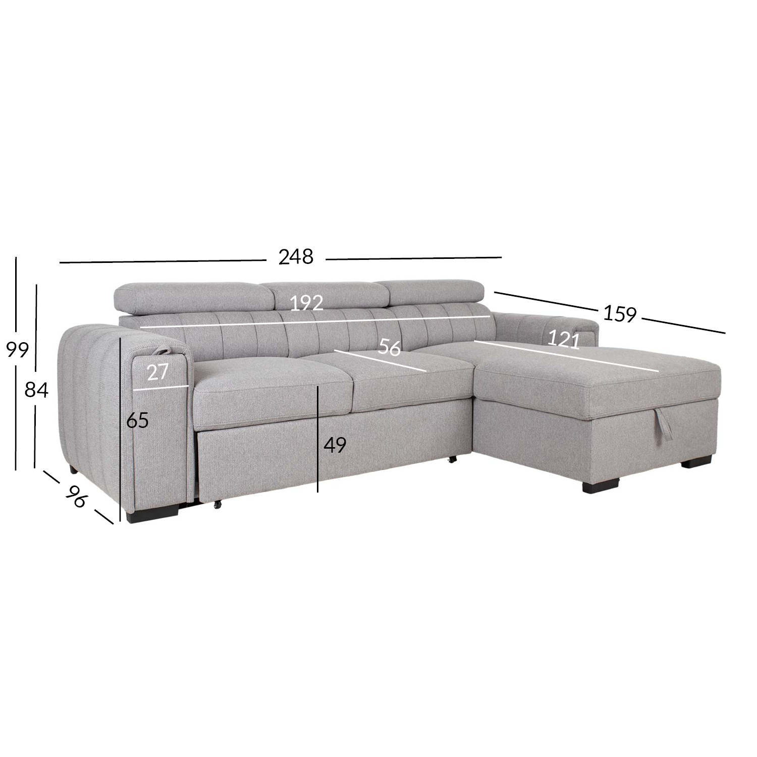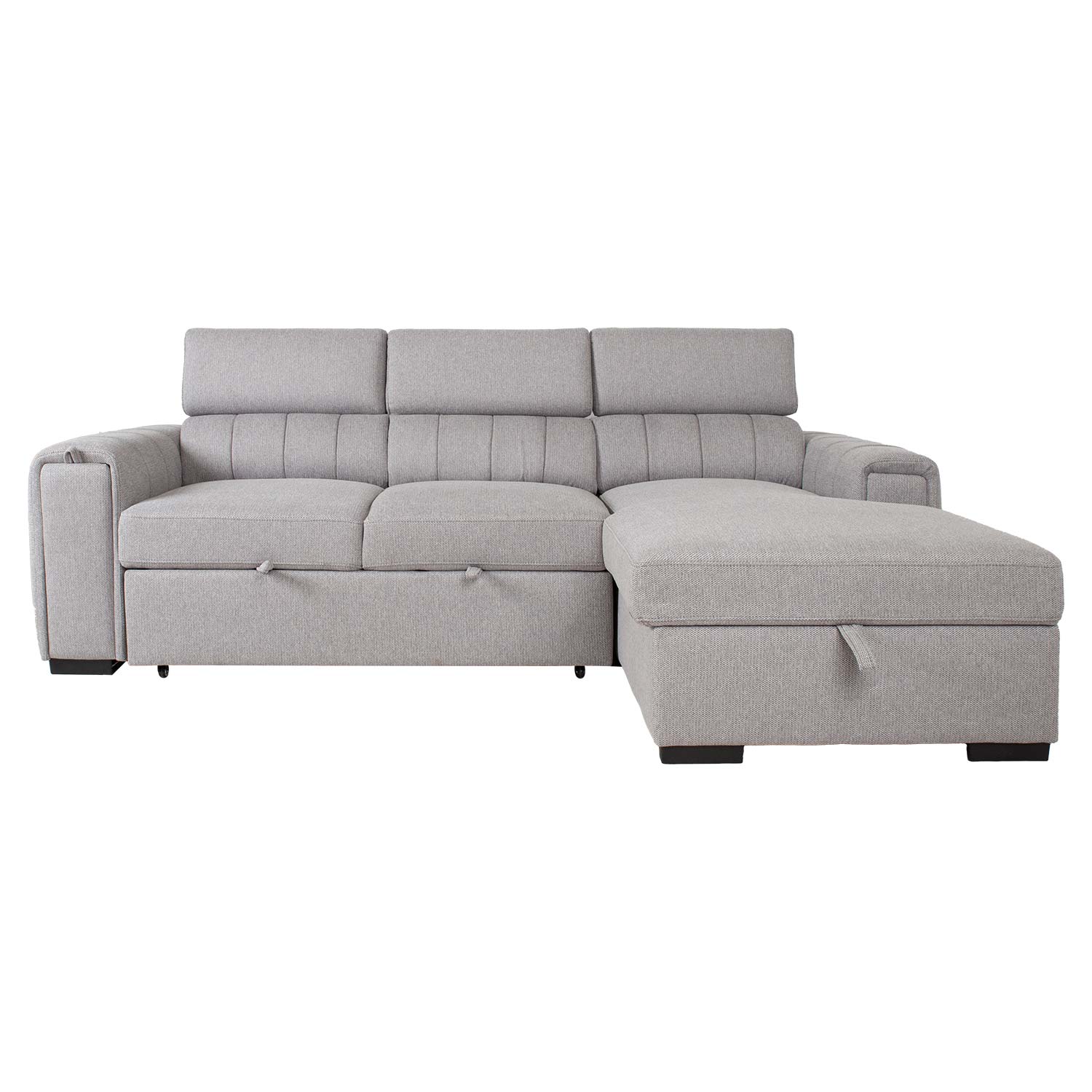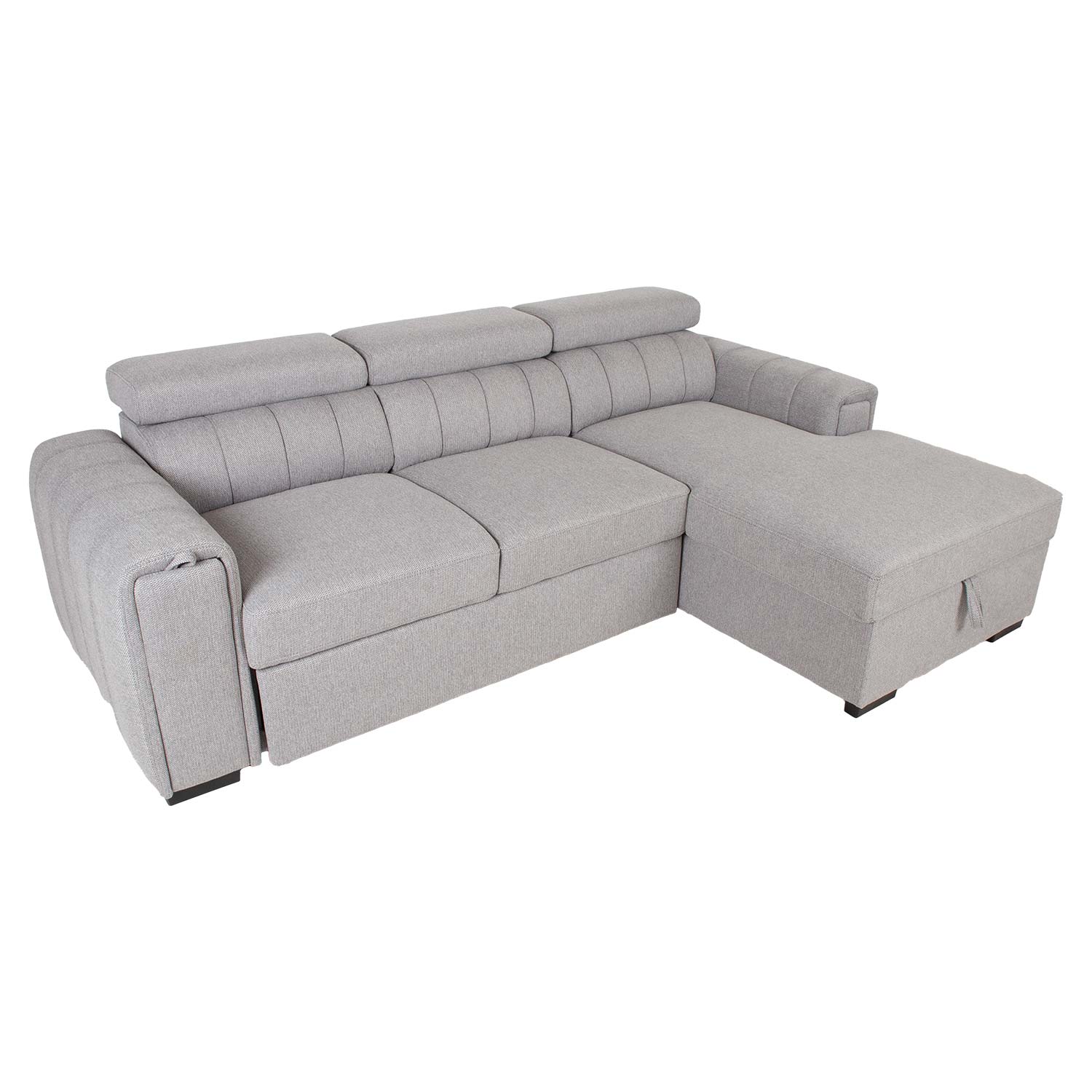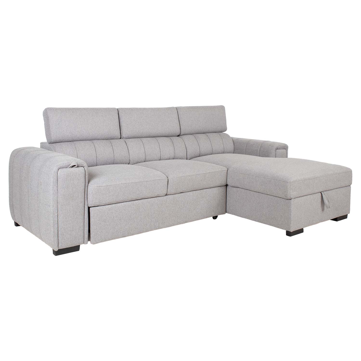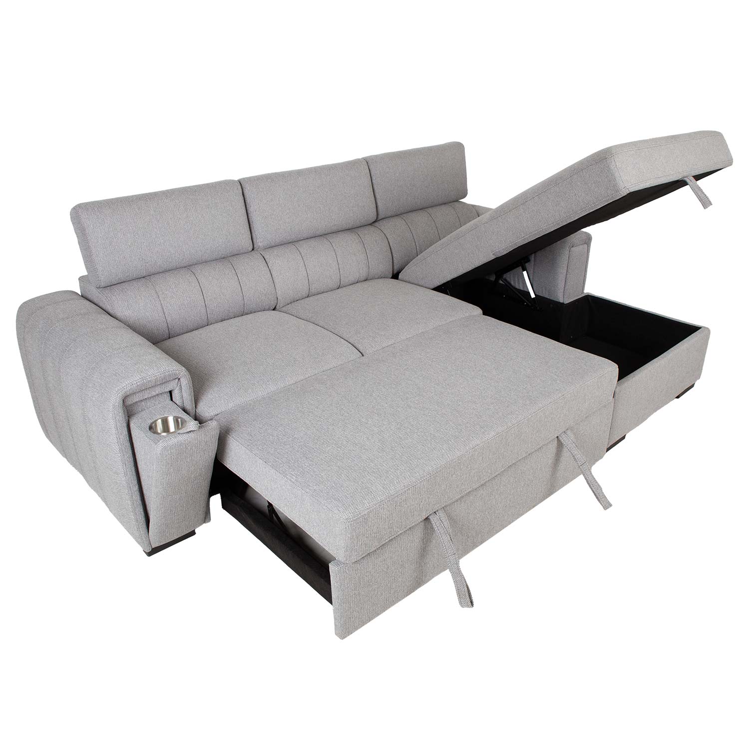 Patogi ir praktiška, ši sofa-lova sužavės jus savo universalumu. Reguliuojamo aukščio atlošas ir paslėptas puodelių laikiklis porankyje suteikia papildomo komforto. Po kampine sofos dalimi yra erdvi daiktadėžė.