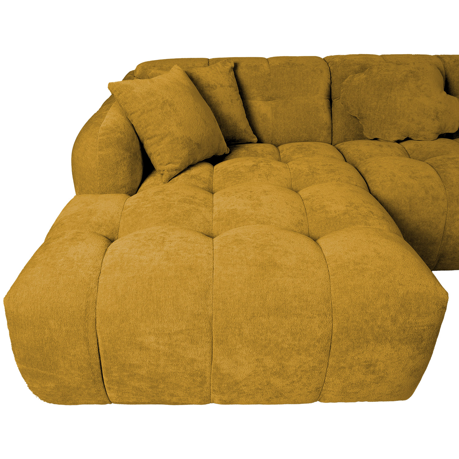 Kampinė sofa FORTE U formos, ilgesnis kampas dešinėje pusėje, mediena geltona.