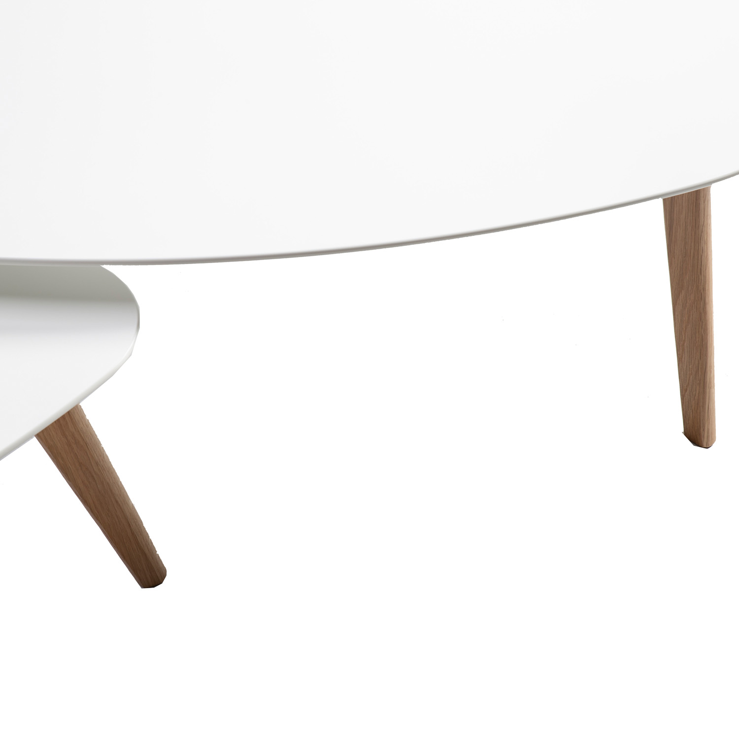 Sofos staliukai HELENA 2 vnt. 100x50xH40cm, 70x35xH35cm. Stalo stalviršis: baltas MDF. Ąžuolinės kojos.