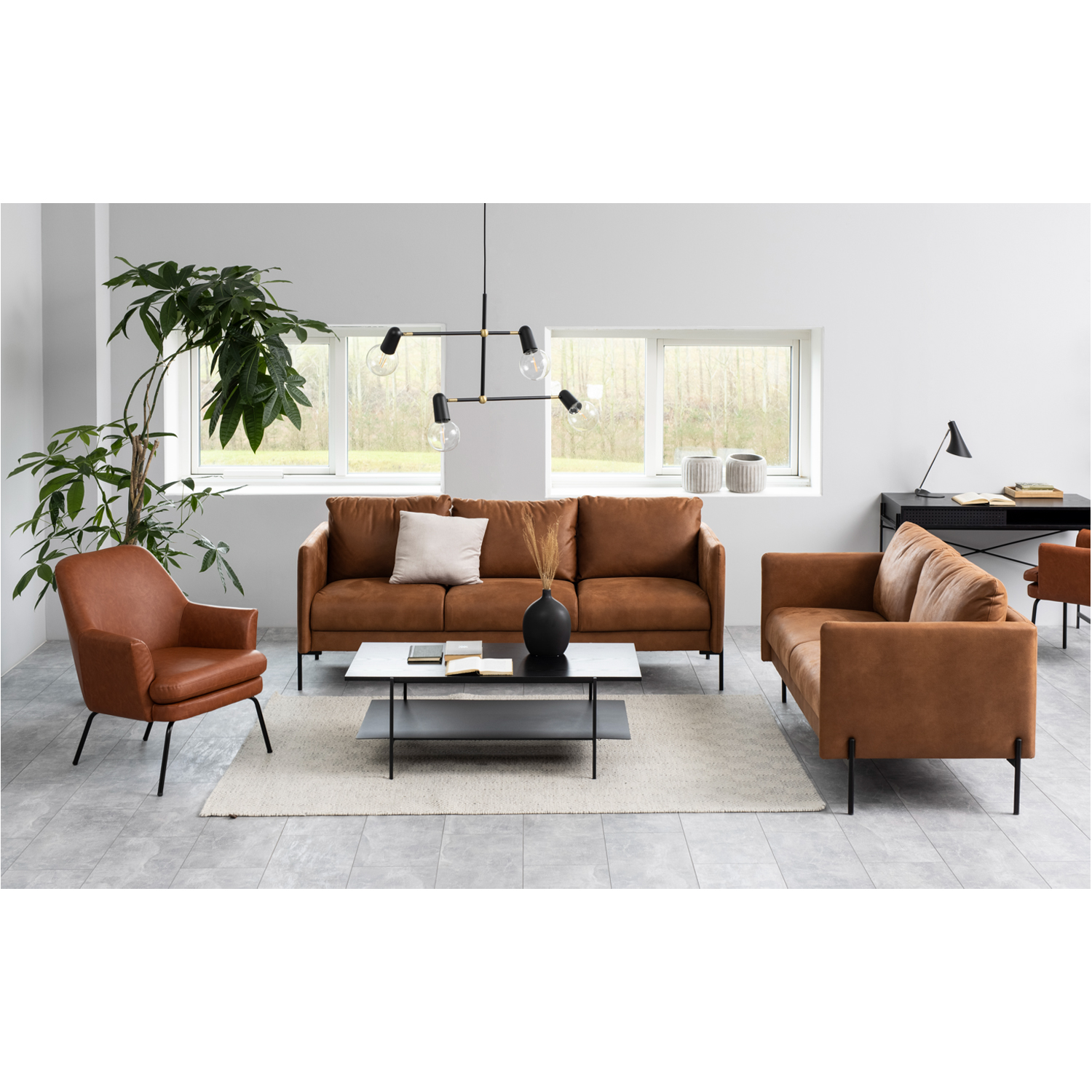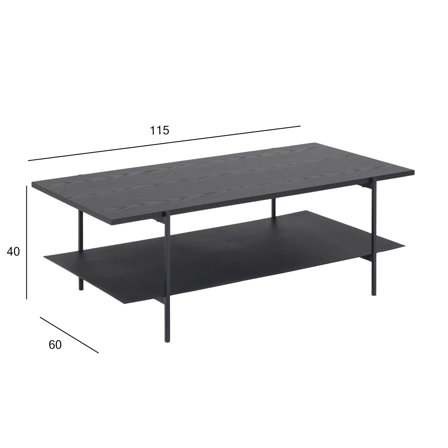 Švarių linijų ir lengvos konstrukcijos sofos staliukas puikiai tinka bet kurioje gyvenamojoje erdvėje. Milteliais dengtos metalinės kojos remia juodą stalviršį. Stalviršis: juodas melaminas. Lentyna ir pagrindas: matinis juodas milteliniu būdu dengtas plienas. Matmenys: 115x60x40 cm.