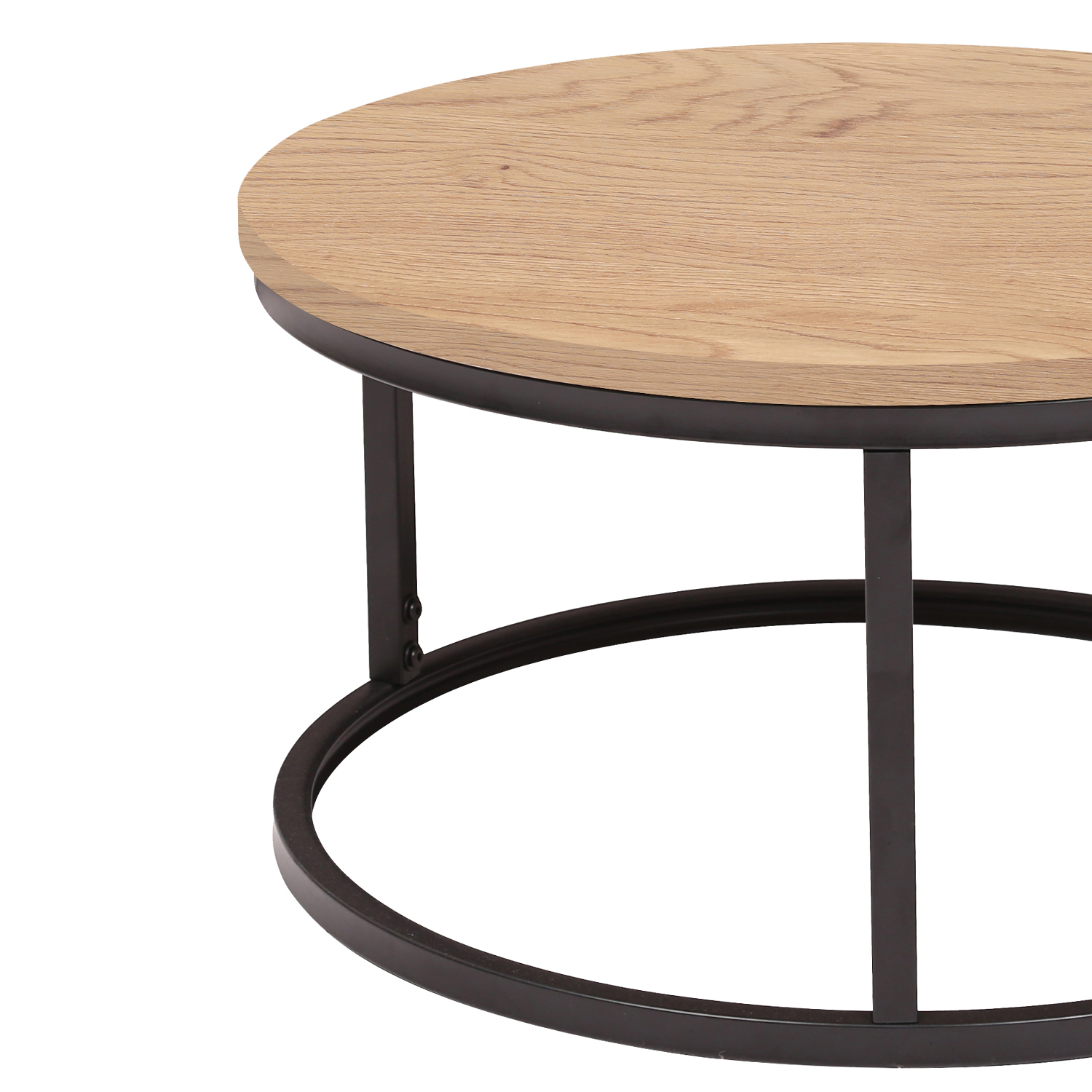 Kavos staliukas BRITE D60xH32cm, šviesus medis. Stalo stalviršis turi šviesaus medžio dekorą ir yra pagamintas iš 18 mm storio MDF plokštės. Stalo rėmas ir kojos pagamintos iš metalo ir padengtos juodais milteliniais dažais. Stalo matmenys D60xH32cm.