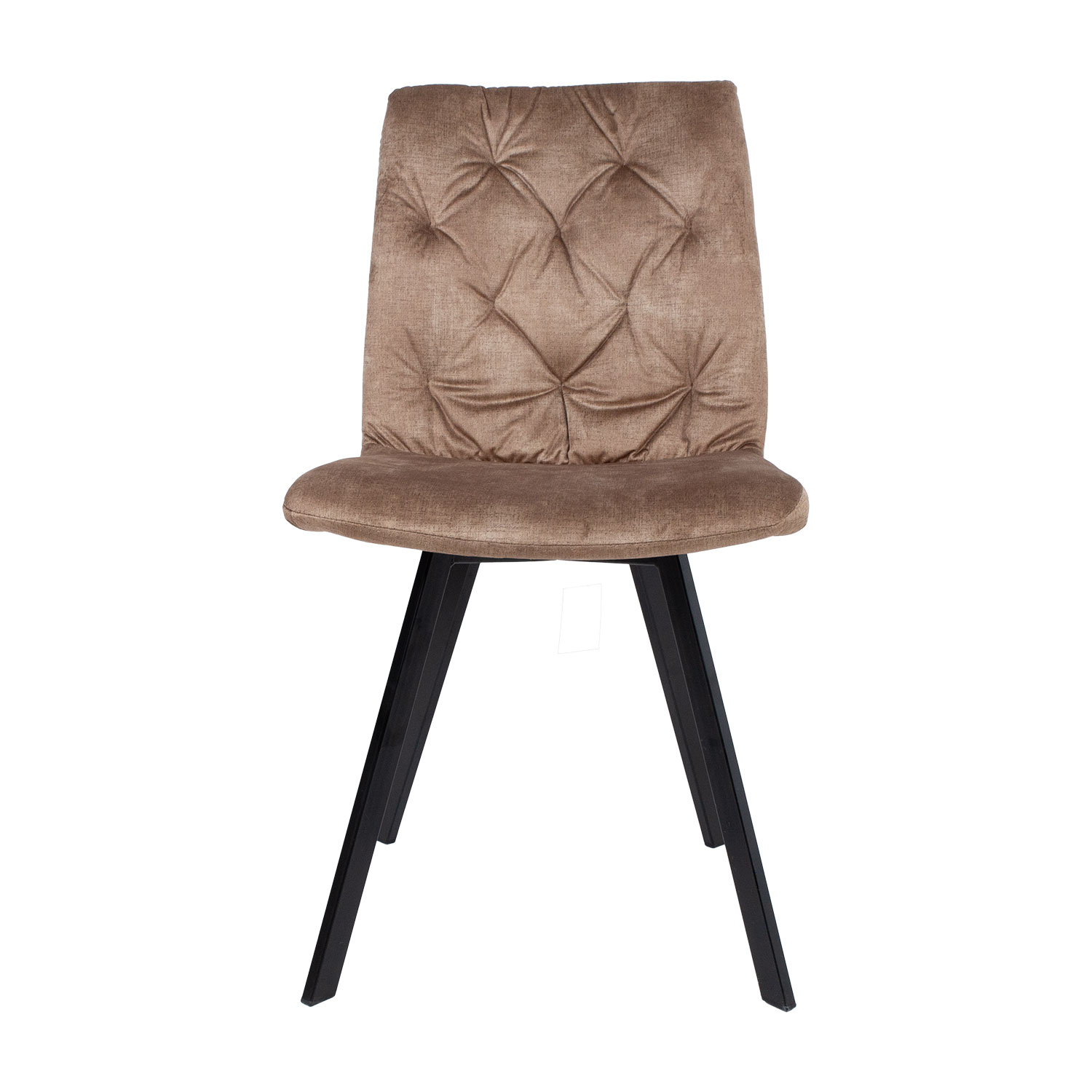 Įrankis AFTON rudas aksomas. Sėdimoji dalis lengvai apmušta ir aptraukta aksominiu audiniu. Užvalkalo medžiaga: 100 % poliesteris, 320 g/m². Martindale 25 000. Kėdės kojos ir pagrindo rėmas pagaminti iš metalo ir padengti juoda milteline danga. Bendrieji kėdės matmenys yra 46x59xH87 cm. Sėdynės plotis 46 cm, sėdynės gylis 44 cm, sėdynės aukštis 46 cm. Ribinis svoris 120 kg.