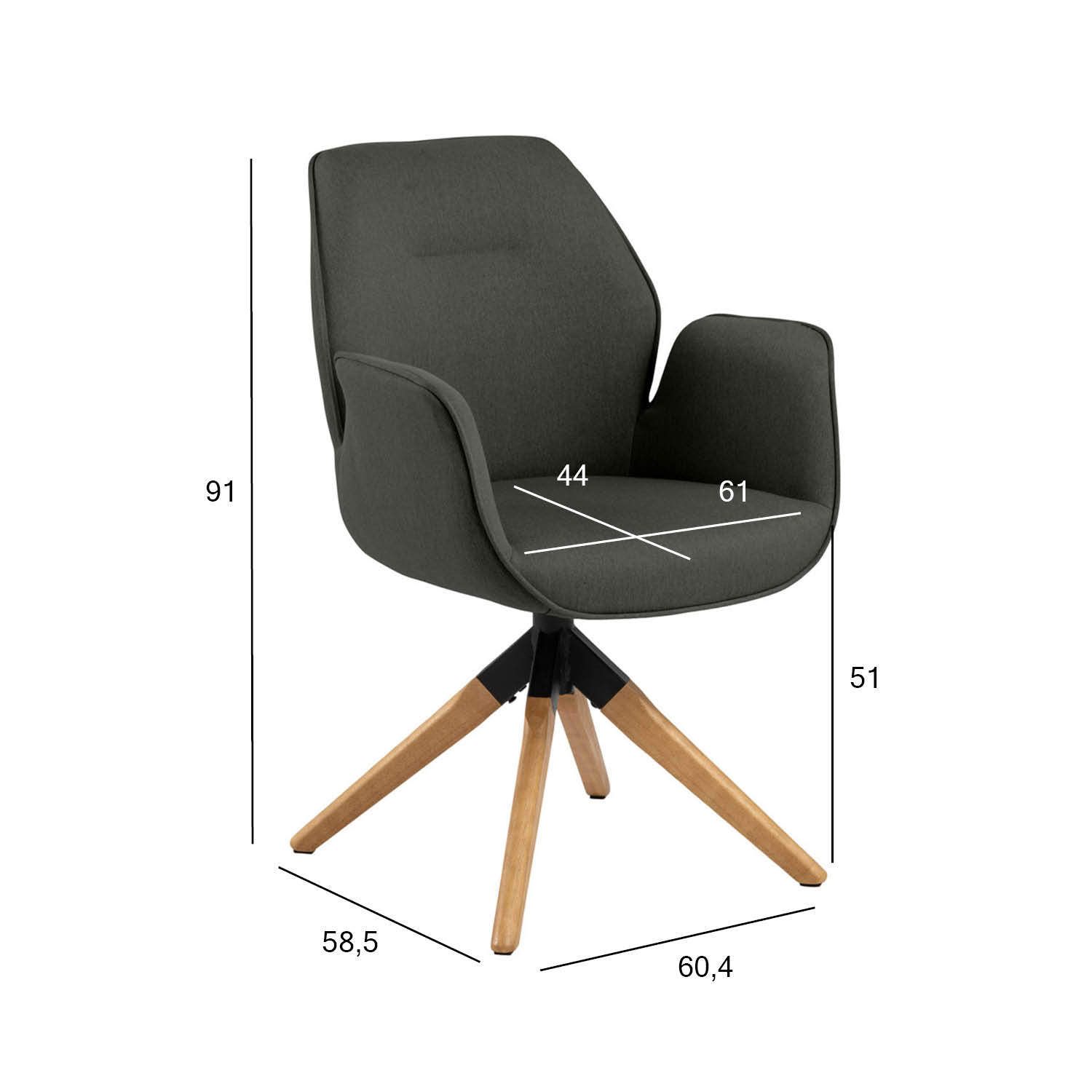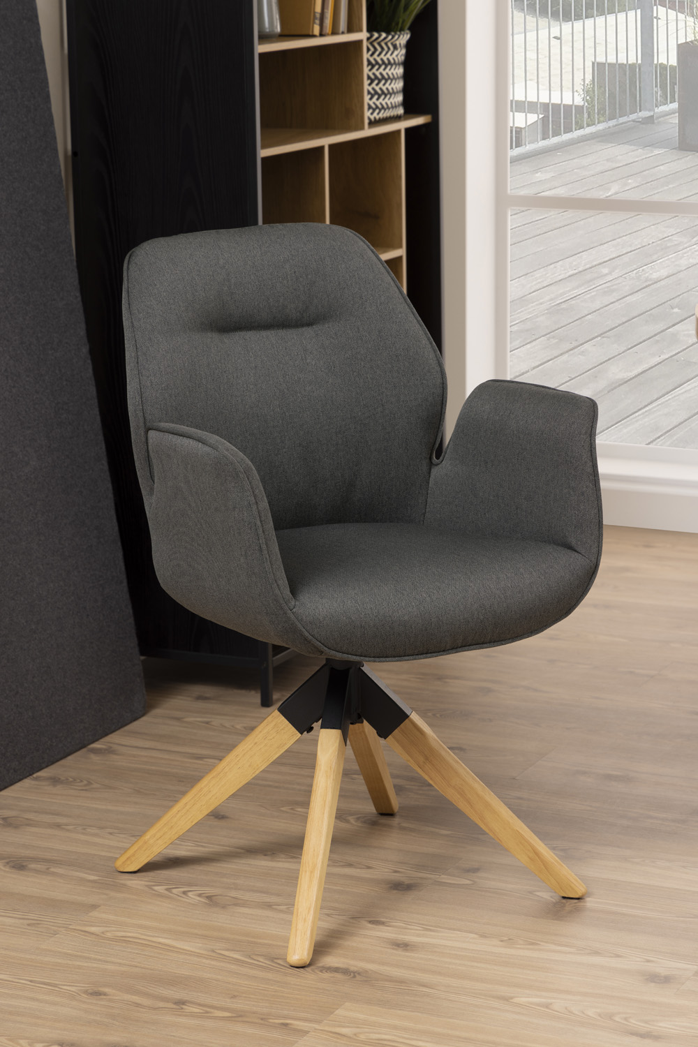 Kėdė AURA su porankiais, tamsiai pilka / ąžuolinė