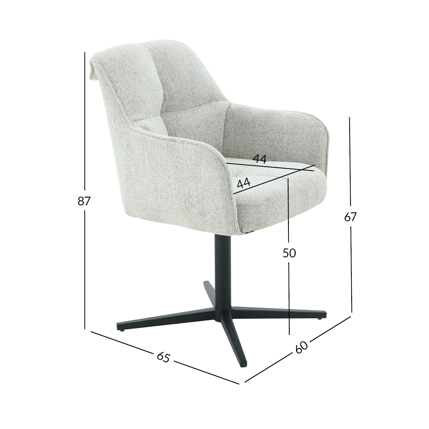 Bendrieji kėdės matmenys yra 60x65xH87 cm. Sėdynės plotis 44 cm, gylis 44 cm, aukštis 50 cm. Porankio aukštis nuo žemės 67 cm.