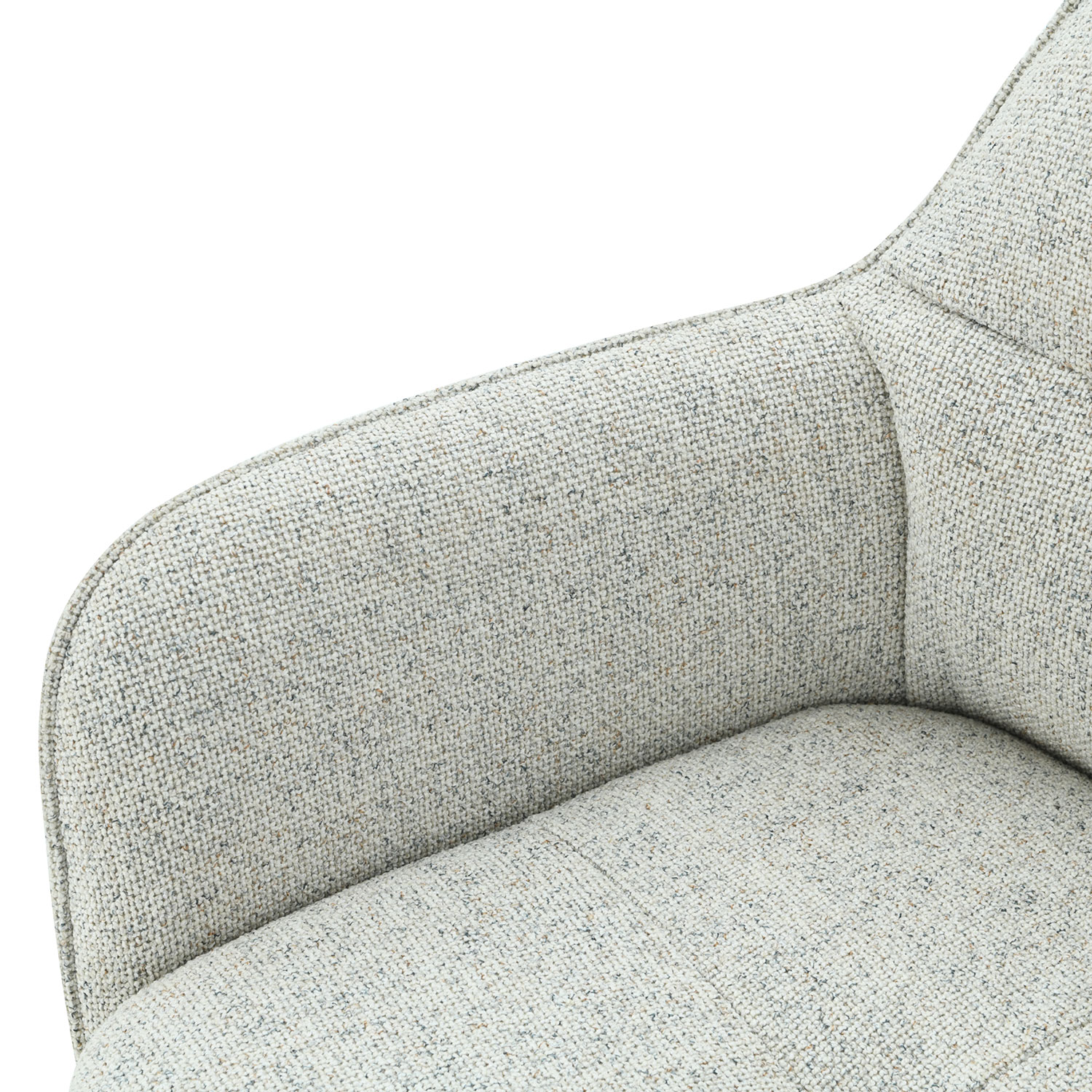 Sėdynė ir porankiai yra minkšti ir aptraukti minkštu poliesterio audiniu.