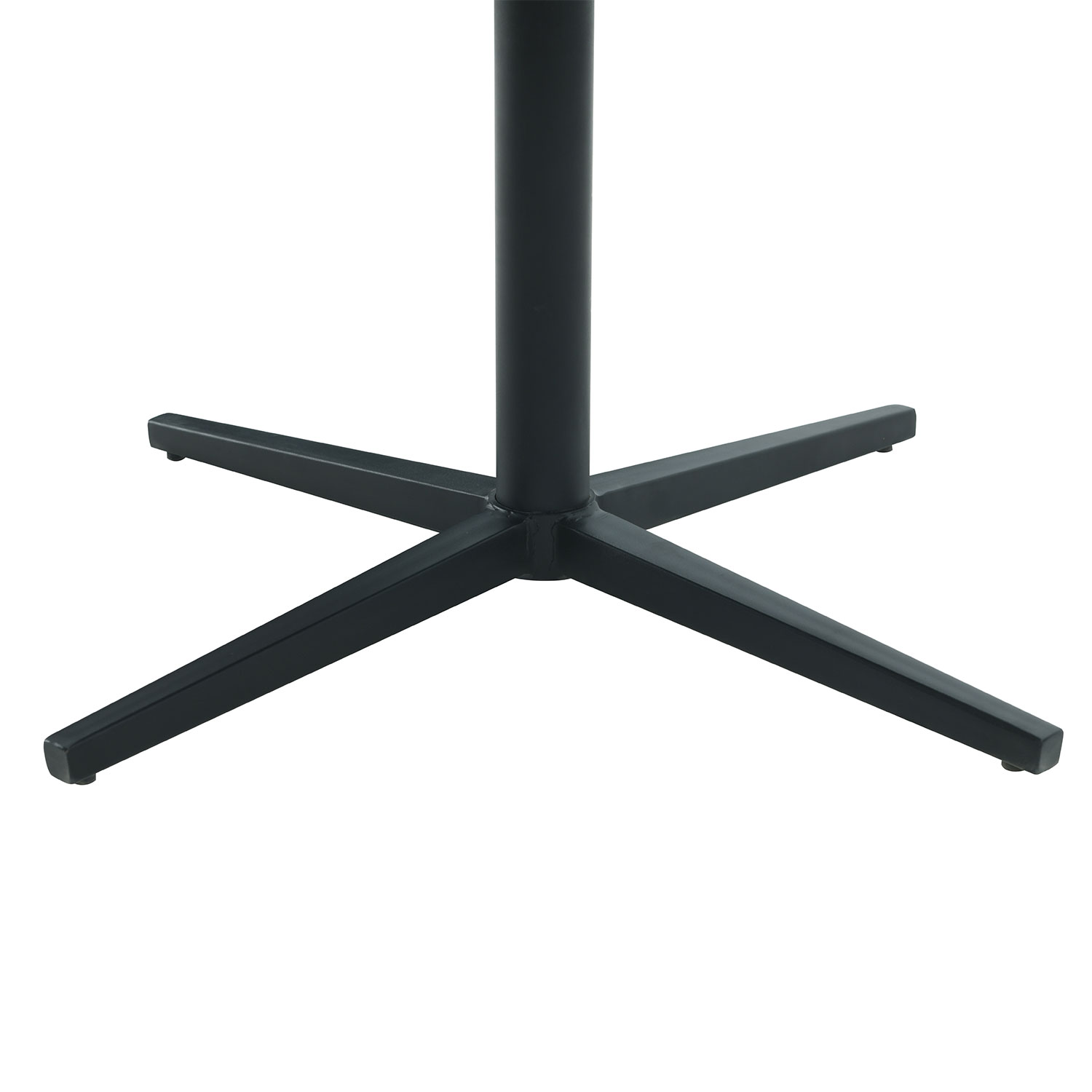 Kėdė turi keturbriaunį metalinį pagrindą, padengtą juoda milteline danga.
