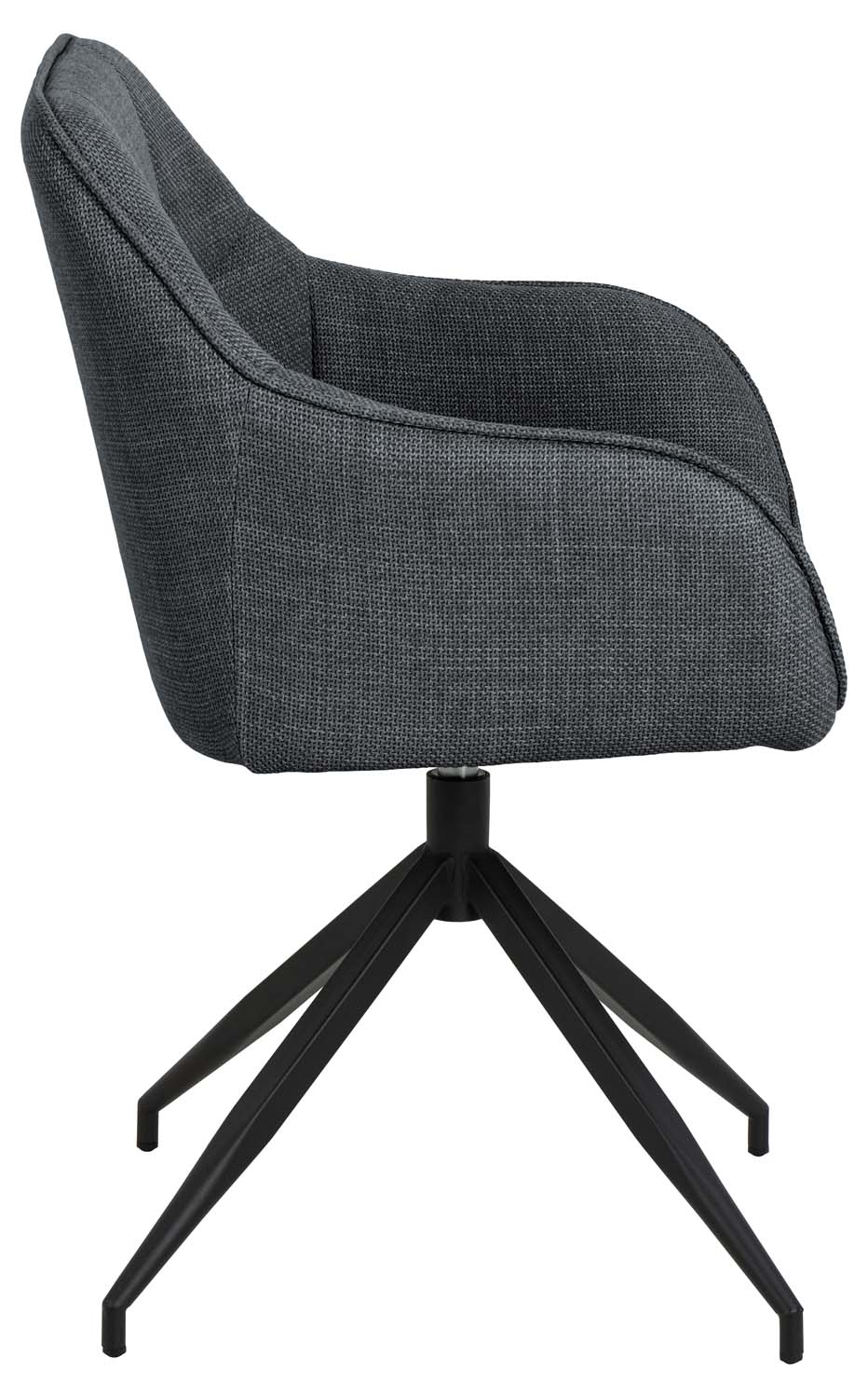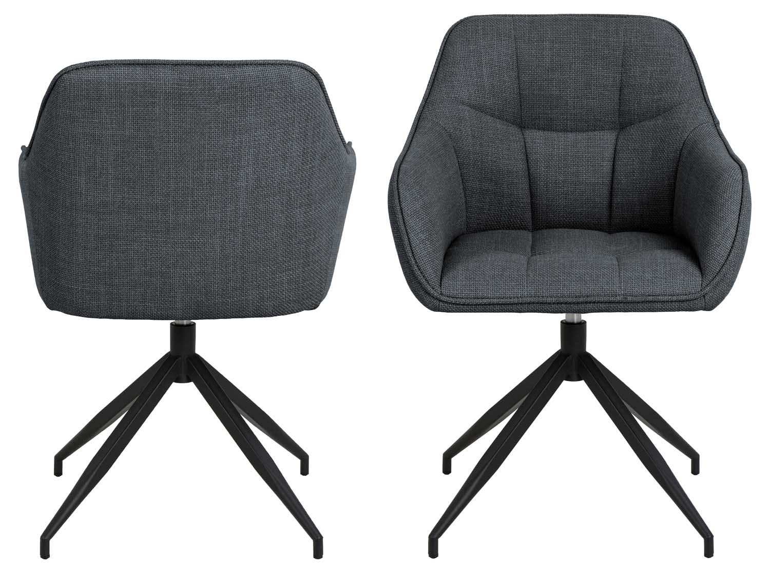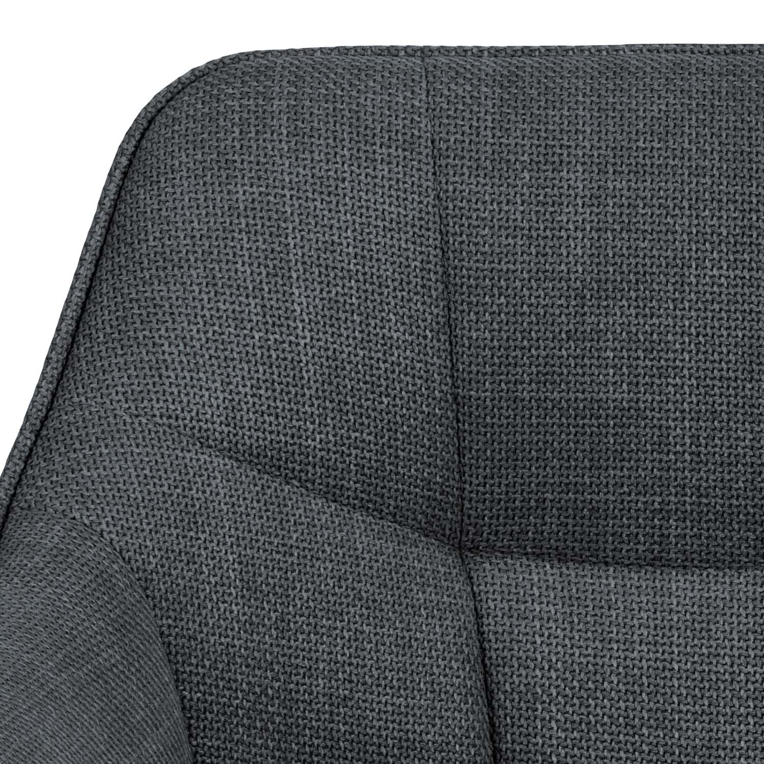 Moderni sukamoji valgomojo kėdė. Šaunus kvadratinių siūlių raštas. Apmušta dviejų atspalvių efektiniu audiniu. Juodais milteliais dengtas pagrindas. Gaminio matmenys 58×54,5xH84,5 cm.