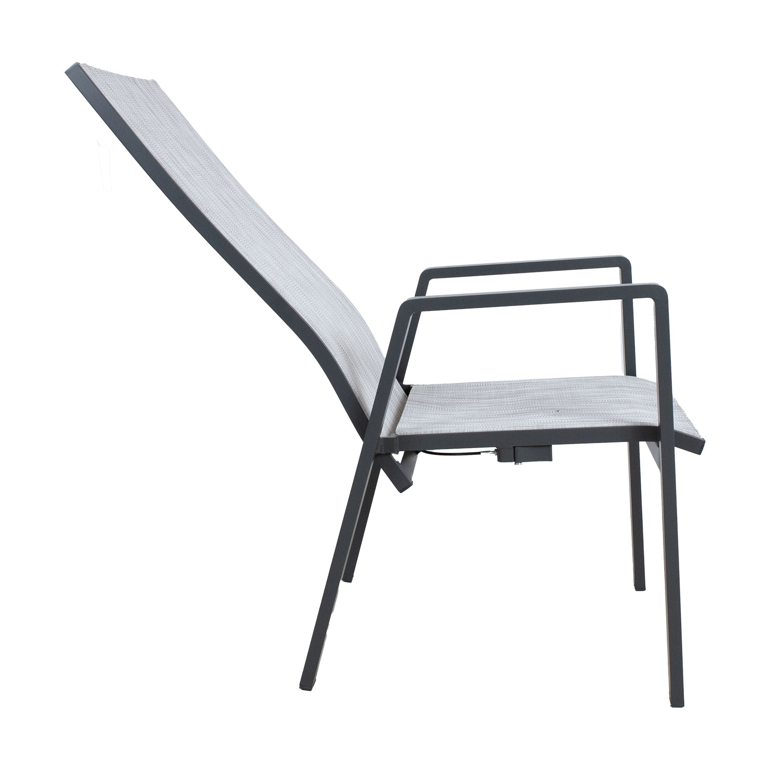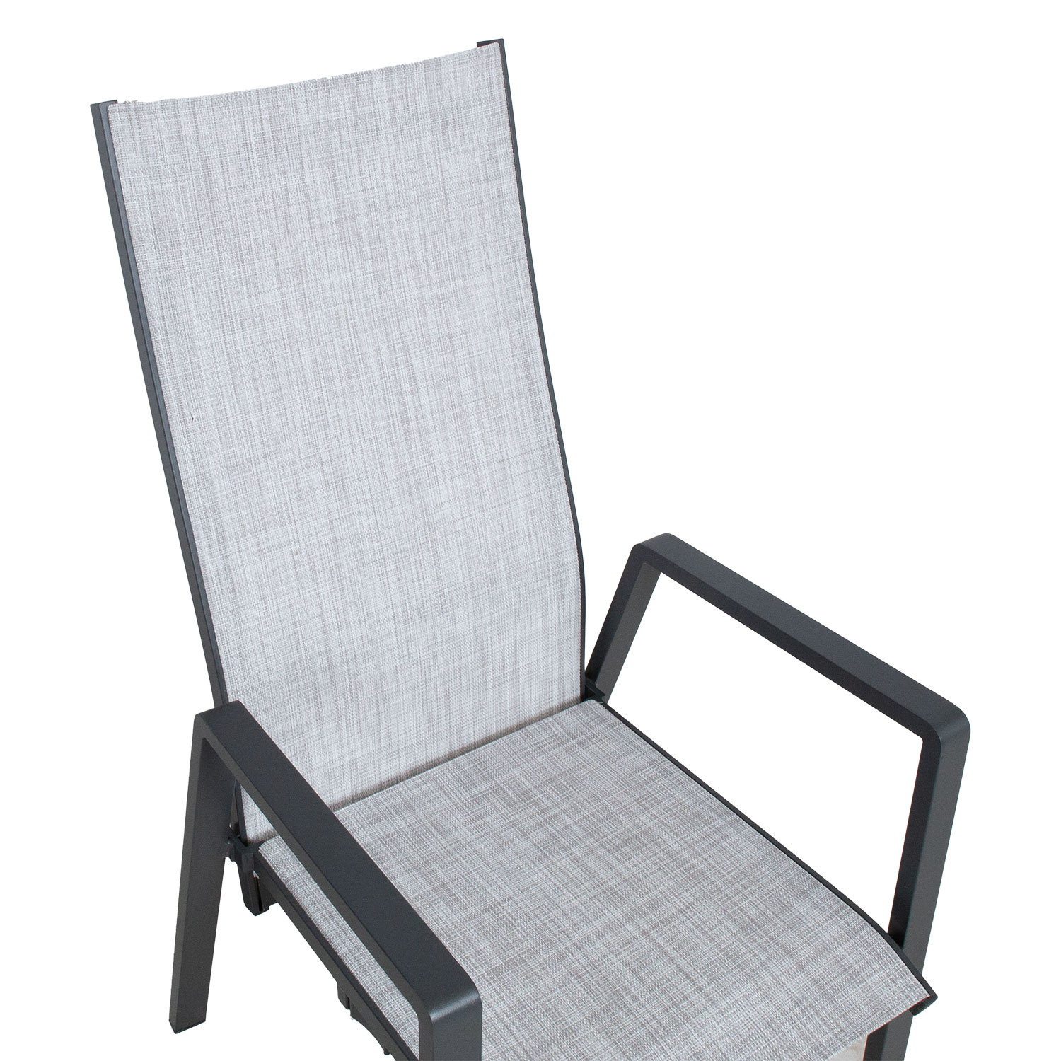 Įrankių CASPER salė. Kėdės kojos ir rėmas pagaminti iš aliuminio ir nudažyti milteliniu būdu. Tekstilinė sėdynė praleidžia orą ir greitai džiūsta. Kėdės atlošas yra reguliuojamas. Kėdės matmenys yra 67x56xH94/110 cm. Ribinis svoris 110 kg. Gaminys labai atsparus besikeičiančioms oro sąlygoms ir lengvai prižiūrimas. PRIEŽIŪRA: pasibaigus vasaros sezonui, rekomenduojame sodo baldus laikyti patalpoje. Pasibaigus vasaros mėnesiams, sodo baldus reikėtų laikyti namuose. Sandėliavimui naudokite sausą ir gerai vėdinamą patalpą.