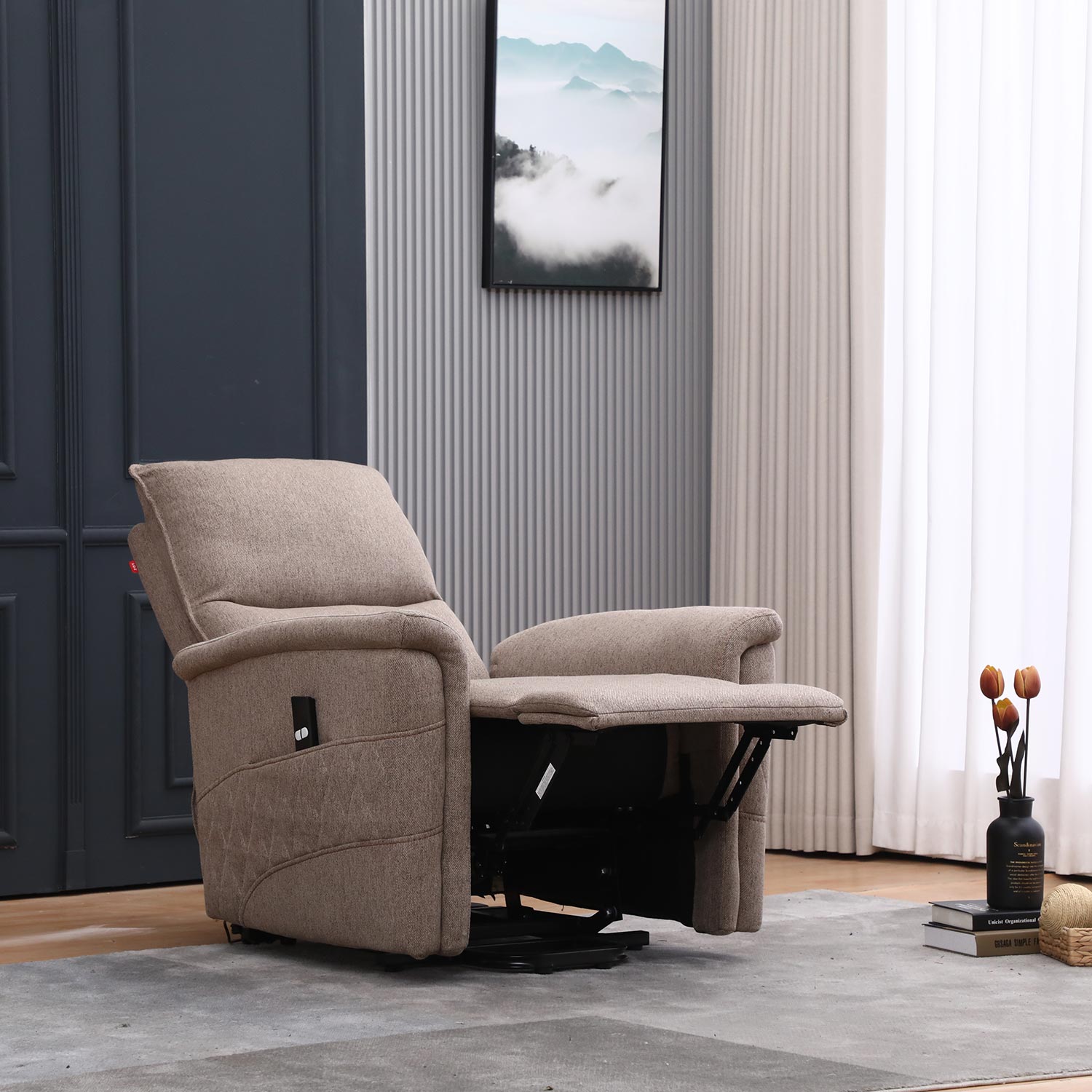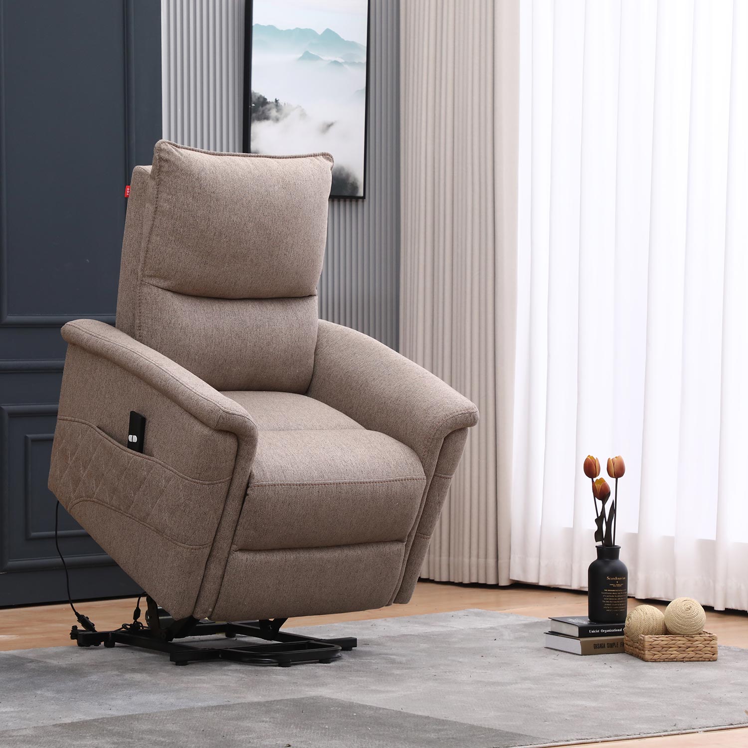 Atraminė kėdė GIANNI, elektrinis pakeliamasis minkštasuolis, smėlio spalvos.