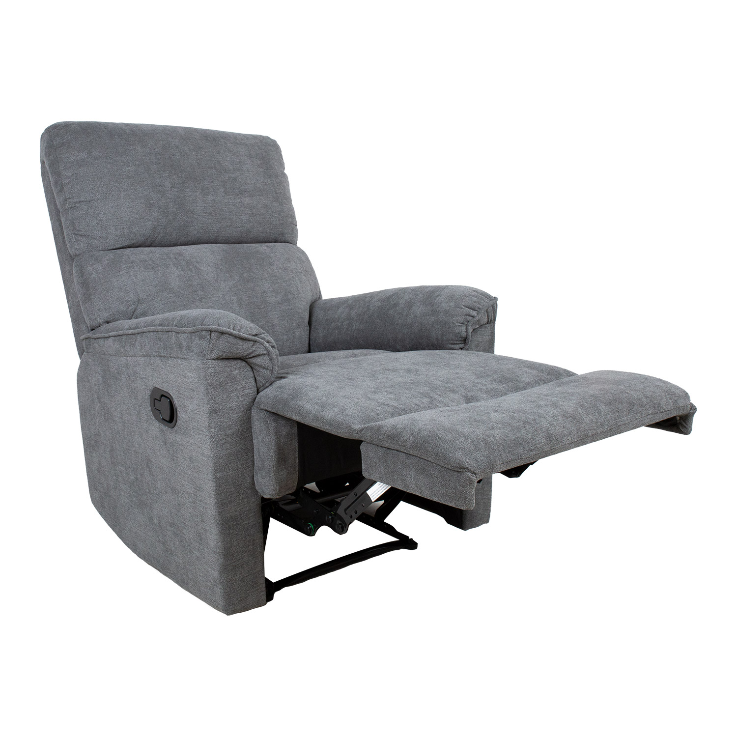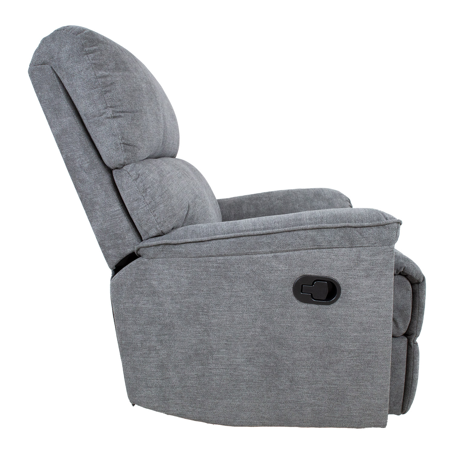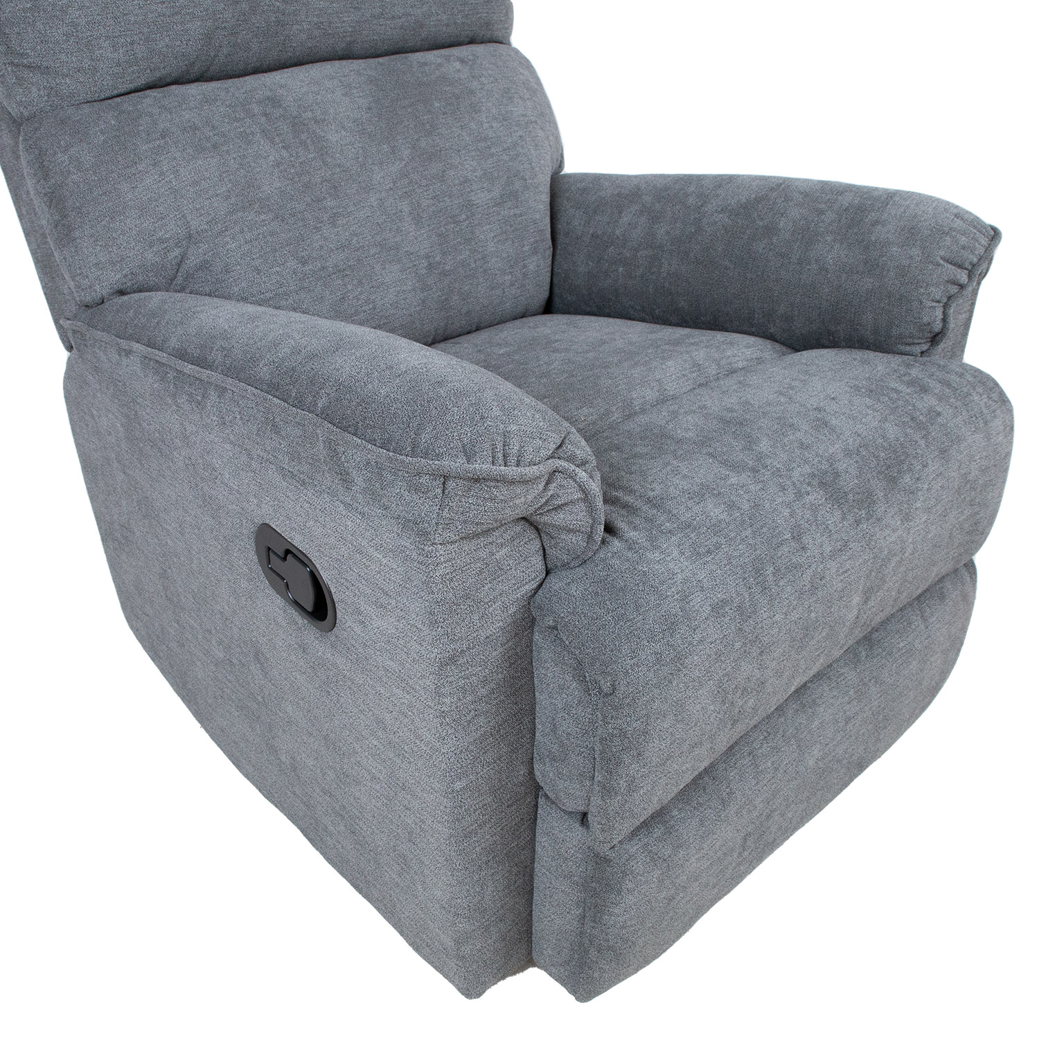 Fotelis GUSTAV manual recliner 80x92xH104cm, pilkos spalvos. Kėdė su rankiniu mechanizmu kojų atramos padėčiai keisti. Pakėlus kojų atlošą atlošas juda tolygiai. Norėdami pakelti kojų atramą, patraukite aukštyn svirtį, esančią sėdynės išorėje. Stumtelėjus kojų atramą žemyn, ji automatiškai užsifiksuoja pradinėje padėtyje. Užvalkalo medžiaga: 100 % poliesterio audinys, Martindale vertė nuo 10 000 iki 15 000. Rėmas: medis, metalas. Apmušalas: poliuretano putos 24 kg/m³. Bendrieji fotelio matmenys: 80x92xH104 cm. Sėdynės plotis 43 cm, sėdynės gylis 43 cm, sėdynės aukštis 49 cm. Atlošo aukštis 66 cm. Porankių aukštis nuo žemės 60 cm.