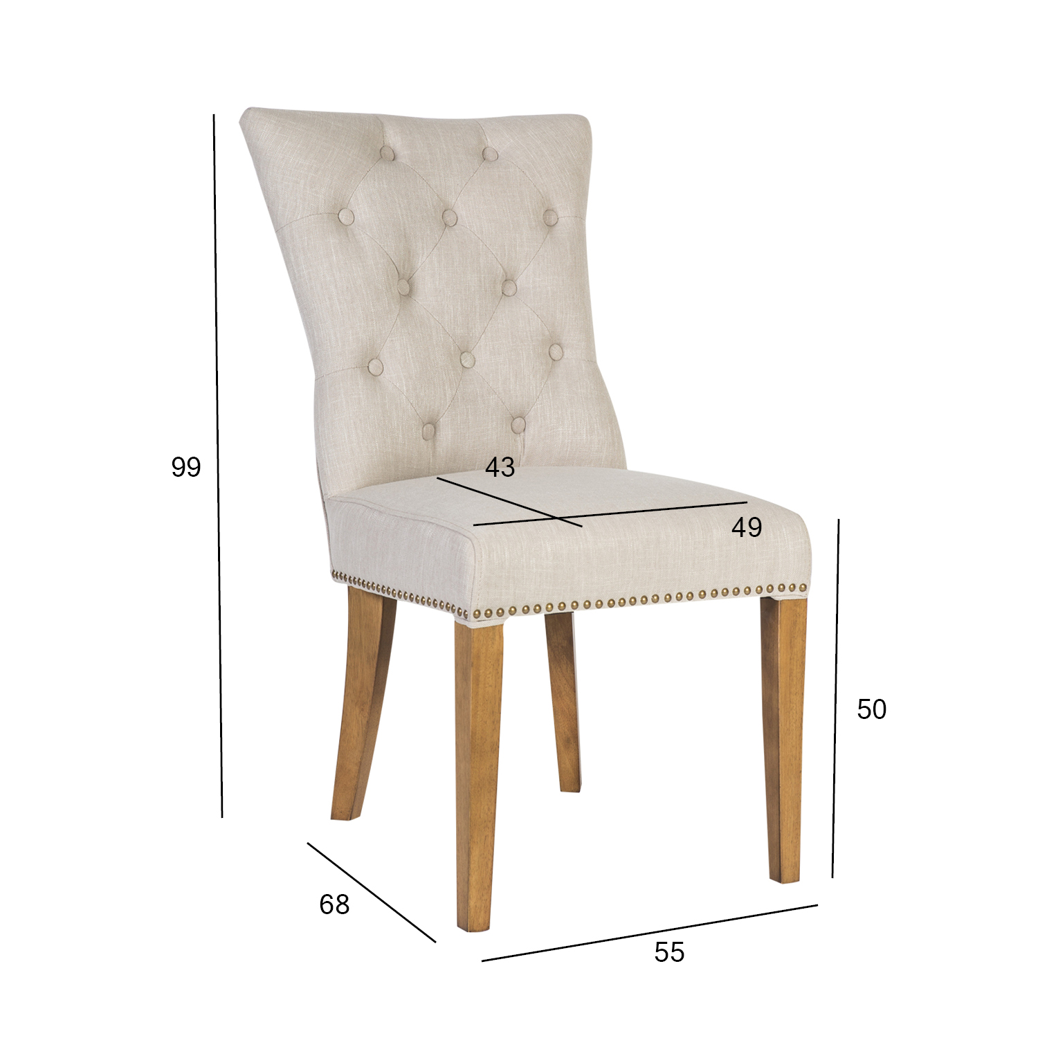 Įrankis HOLMES bee˛. Kėdė aptraukta smėlio spalvos lino išvaizdos audiniu. Apmušalo medžiagą: 57,7 % poliesterio, 25,7 % viskozės, 16,6 % lininio audinio. Kėdė turi medines kojas. Bendrieji kėdės matmenys: 55x68xH99 cm.