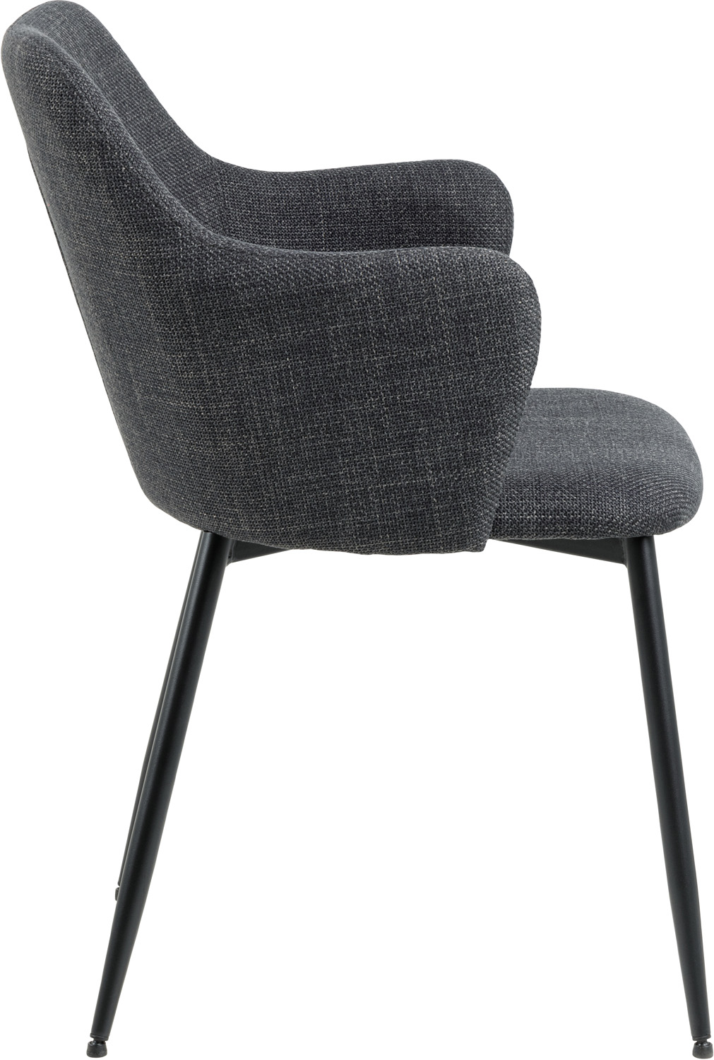 Valgomojo kėdė suteikia interjerui asmeniškumo. Kampuoti porankiai suteikia kėdei išskirtinę išvaizdą. Metalinės kojos užtikrina pakankamą stabilumą, kad galėtumėte patogiai mėgautis maistu. Medžiaginį užvalkalą galima užtraukti. Kojos: matinės juodos spalvos milteliniu būdu dengtas metalas. Matmenys 55×58,5xH84,5 cm. PRIEŽIŪRA: Priežiūra apsiriboja dulkių siurbliu ir dėmių šalinimu. Reikia atsargiai šalinti dėmes. Pirmiausia išbandykite dėmių šalinimo priemones mažiau matomoje vietoje ir atitinkamai elkitės. Niekada nenaudokite tirpiklių. Nestatykite baldų tiesioginiuose saulės spinduliuose. Pagrindas: kasdieniam valymui naudokite šluostę, sausai išskalautą muiluotu vandeniu. Paviršių sausai nušluostykite šluoste, kad nerūdytų. Netrinkite paviršiaus kietais daiktais.