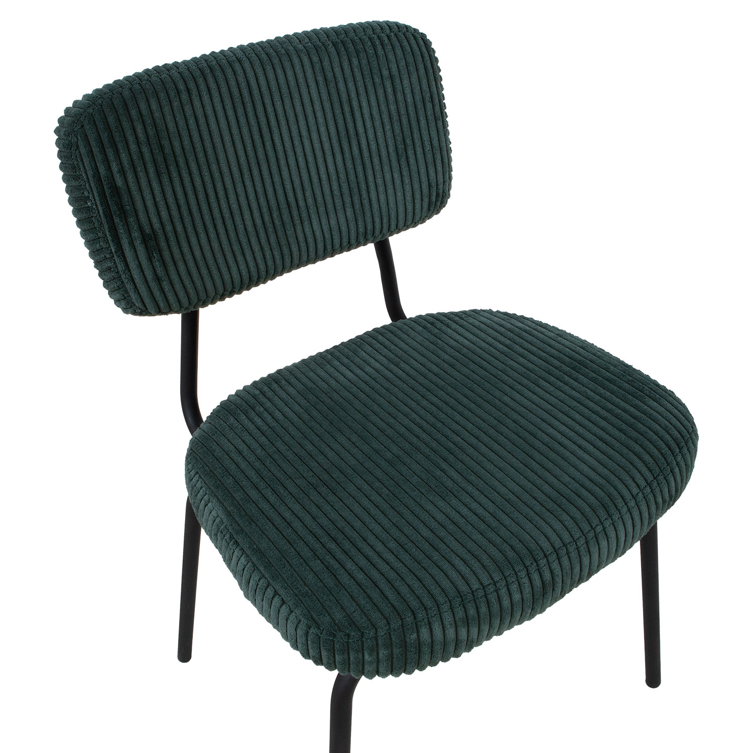 Įrankis KEIU tamsiai žalias aksomas. Kėdės sėdimoji dalis ir atlošas lengvai apmušti ir aptraukti poliesterio audiniu. Kojos ir rėmas pagaminti metalo ir padengti juoda milteline danga. Bendrieji kėdės matmenys yra 46x51xH76 cm. Sėdynės plotis 46 cm, gylis 40 cm, aukštis 47 cm. Ribinis svoris 100 kg.