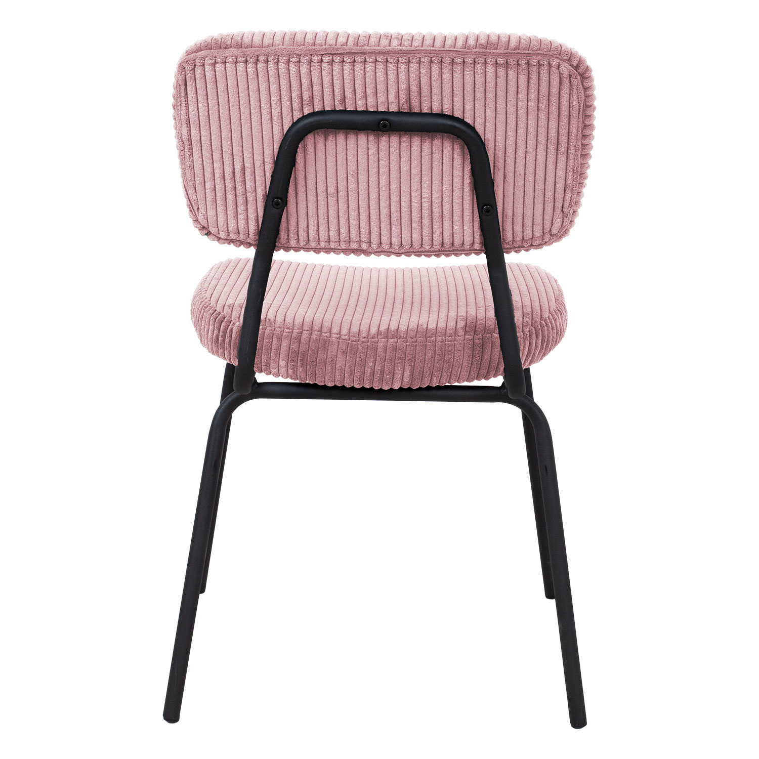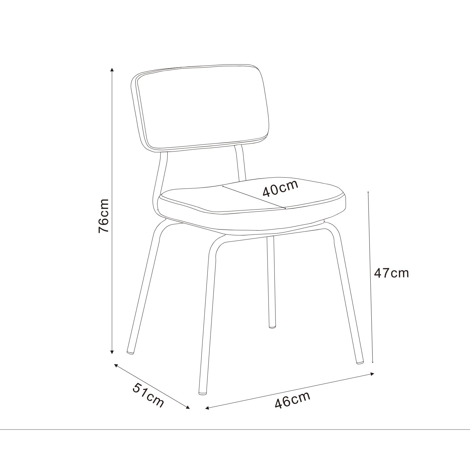 Įrankis KEIU vanarozinis aksomas. Kėdės sėdimoji dalis ir atlošas lengvai apmušti ir aptraukti poliesterio audiniu. Kojos ir rėmas pagaminti metalo ir padengti juoda milteline danga. Bendrieji kėdės matmenys yra 46x51xH76 cm. Sėdynės plotis 46 cm, gylis 40 cm, aukštis 47 cm. Ribinis svoris 100 kg.
