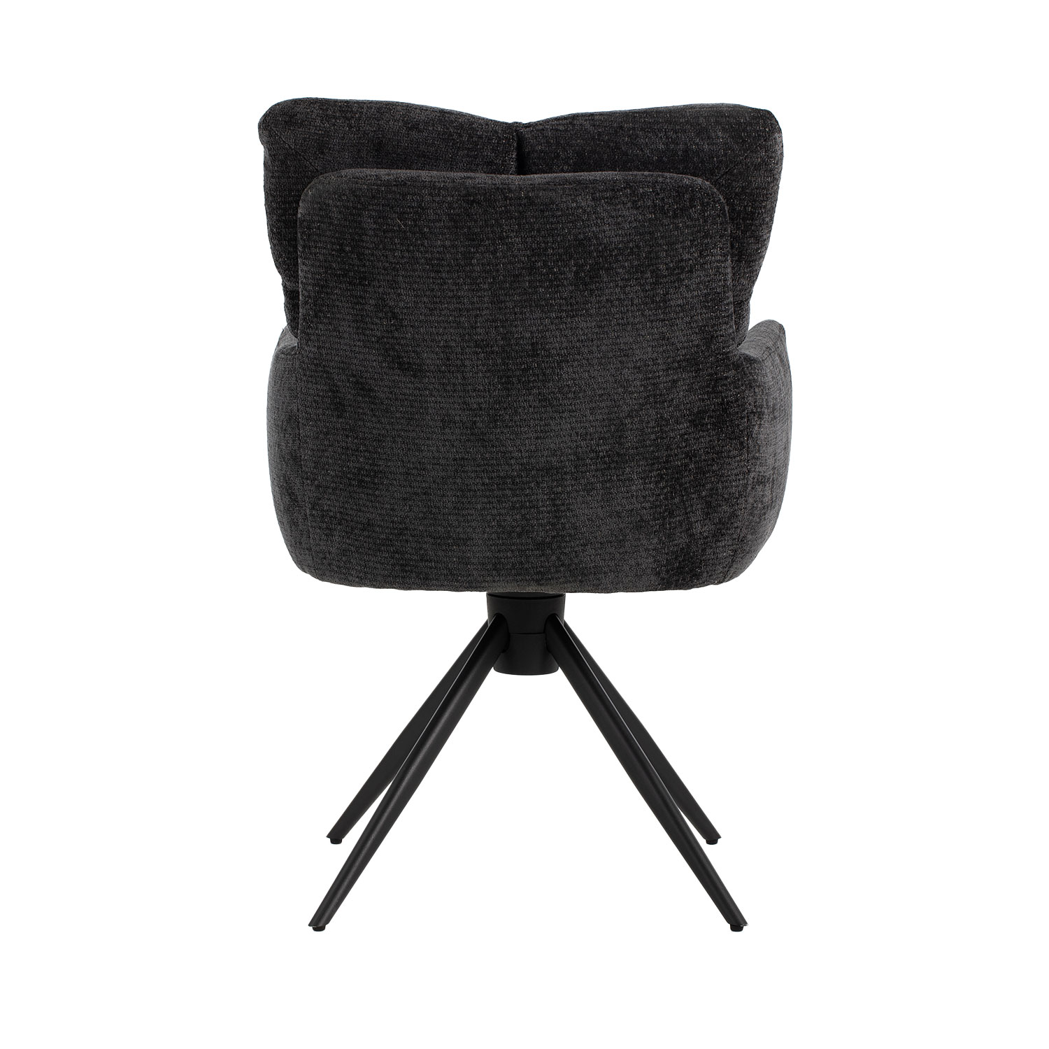Kėdės kojos pagamintos iš metalo ir padengtos juoda milteline danga.