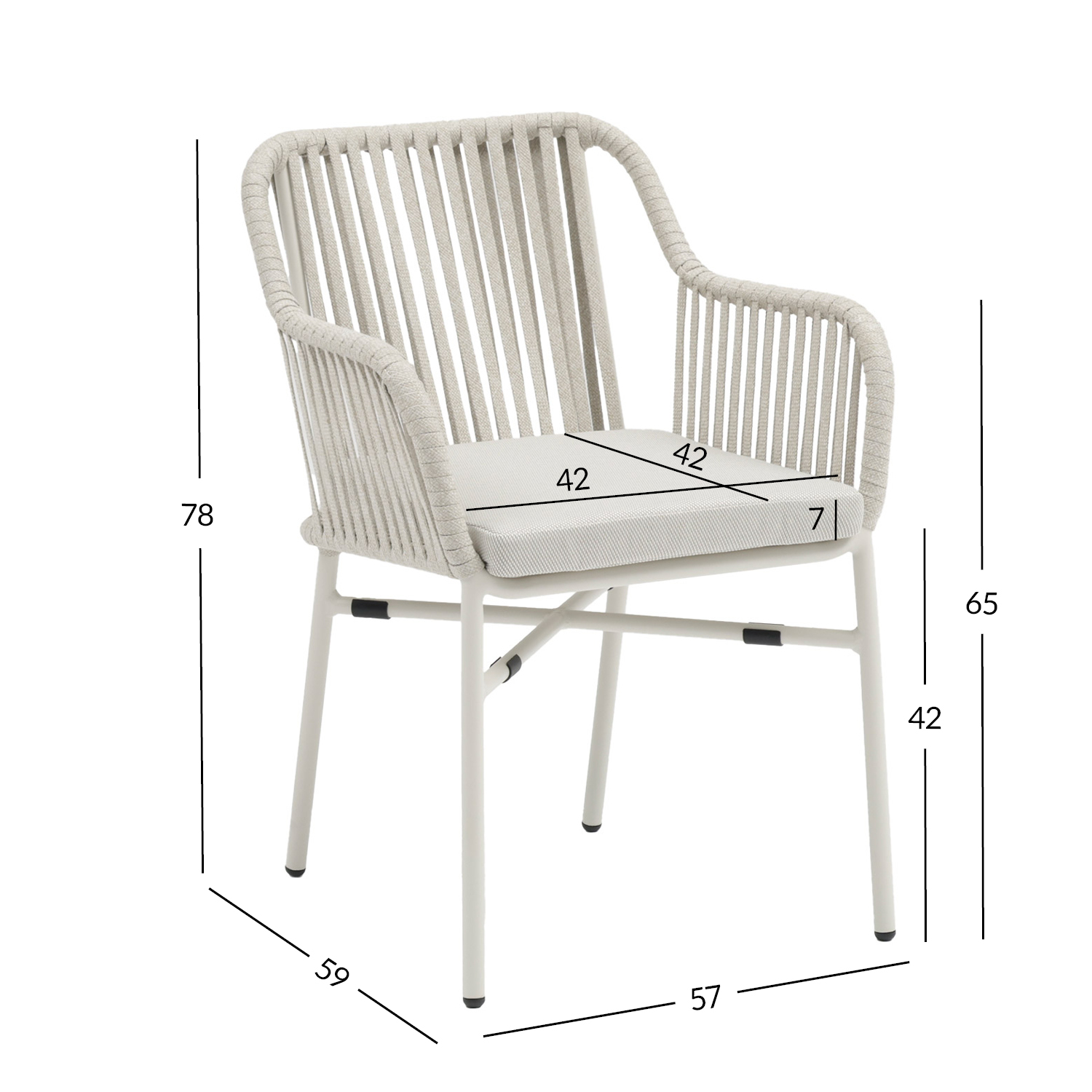 Bendri kėdės matmenys 57x59xH78 cm. Sėdynės aukštis iki rėmo krašto 42 cm. Porankio aukštis nuo žemės 65 cm.
