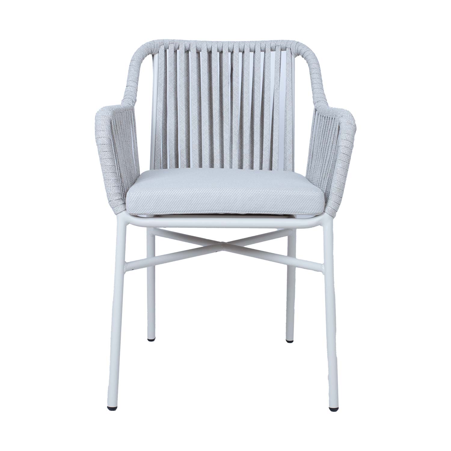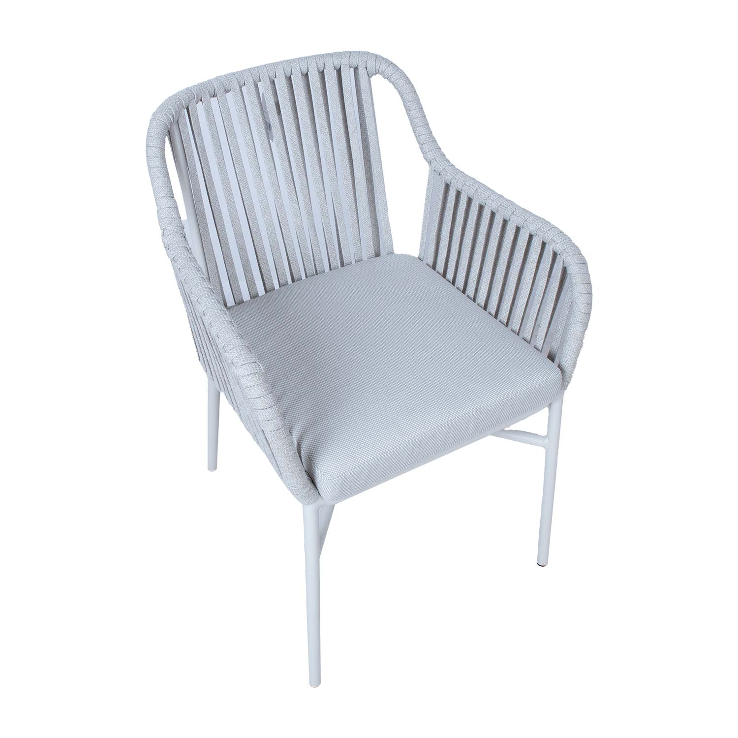 Kėdės atlošas ir porankiai aptraukti virvės pyne.