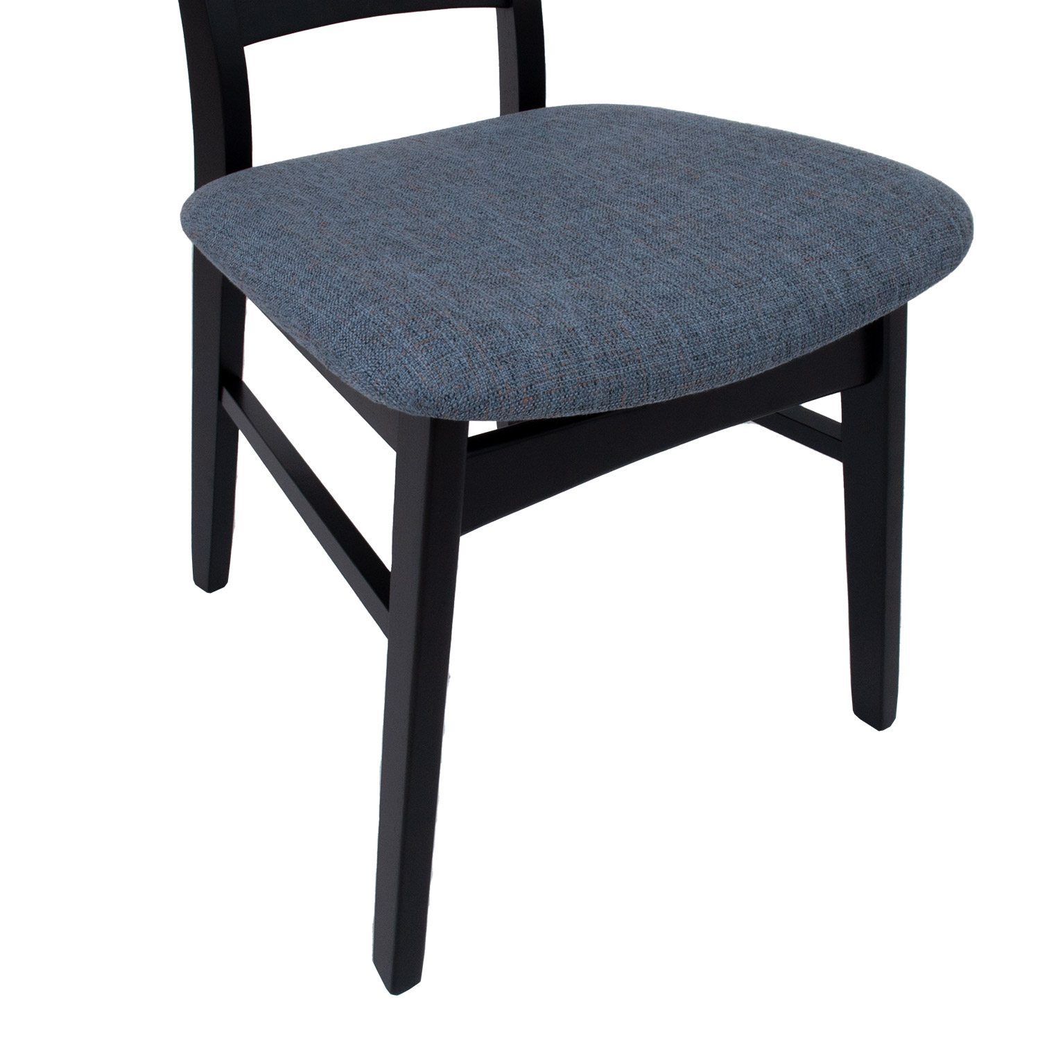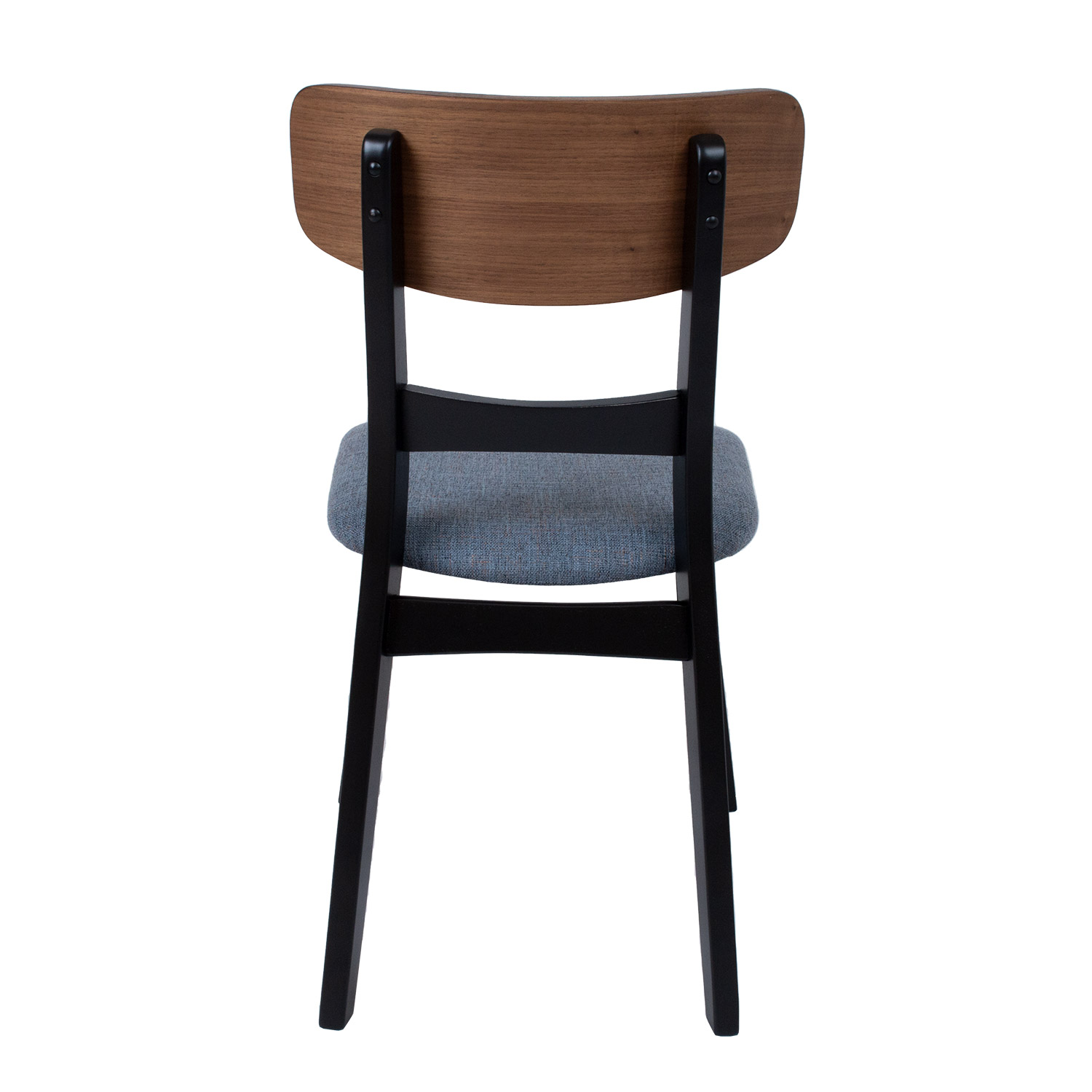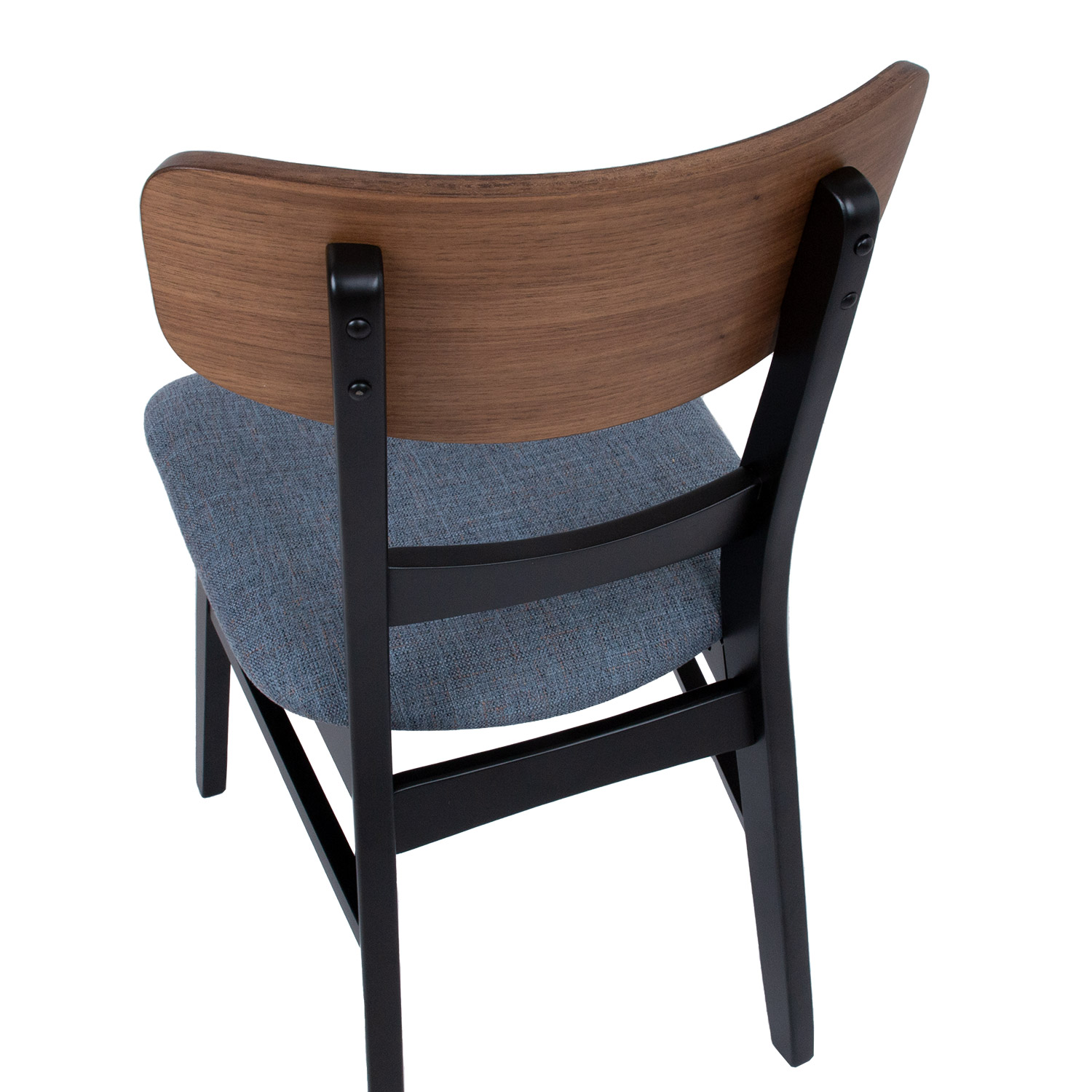 Įrankis MIA 47x52xH78cm, pilkai mėlynos spalvos. Kėdės sėdimoji dalis lengvai apmušta ir aptraukta pilkai mėlynu poliesterio audiniu. Lenktos faneros atlošas padengtas natūralia riešutmedžio fanera. Kėdės kojos ir rėmas pagaminti iš kaučiukmedžio ir nudažyti juodai. Ribinis svoris 120 kg.