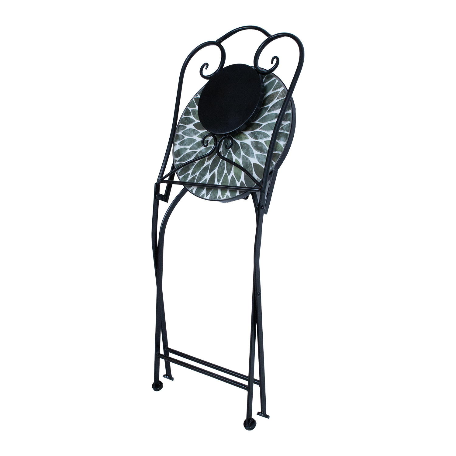 Sėdynė ir atlošas: keraminė plokštė su žalių lapų motyvais.