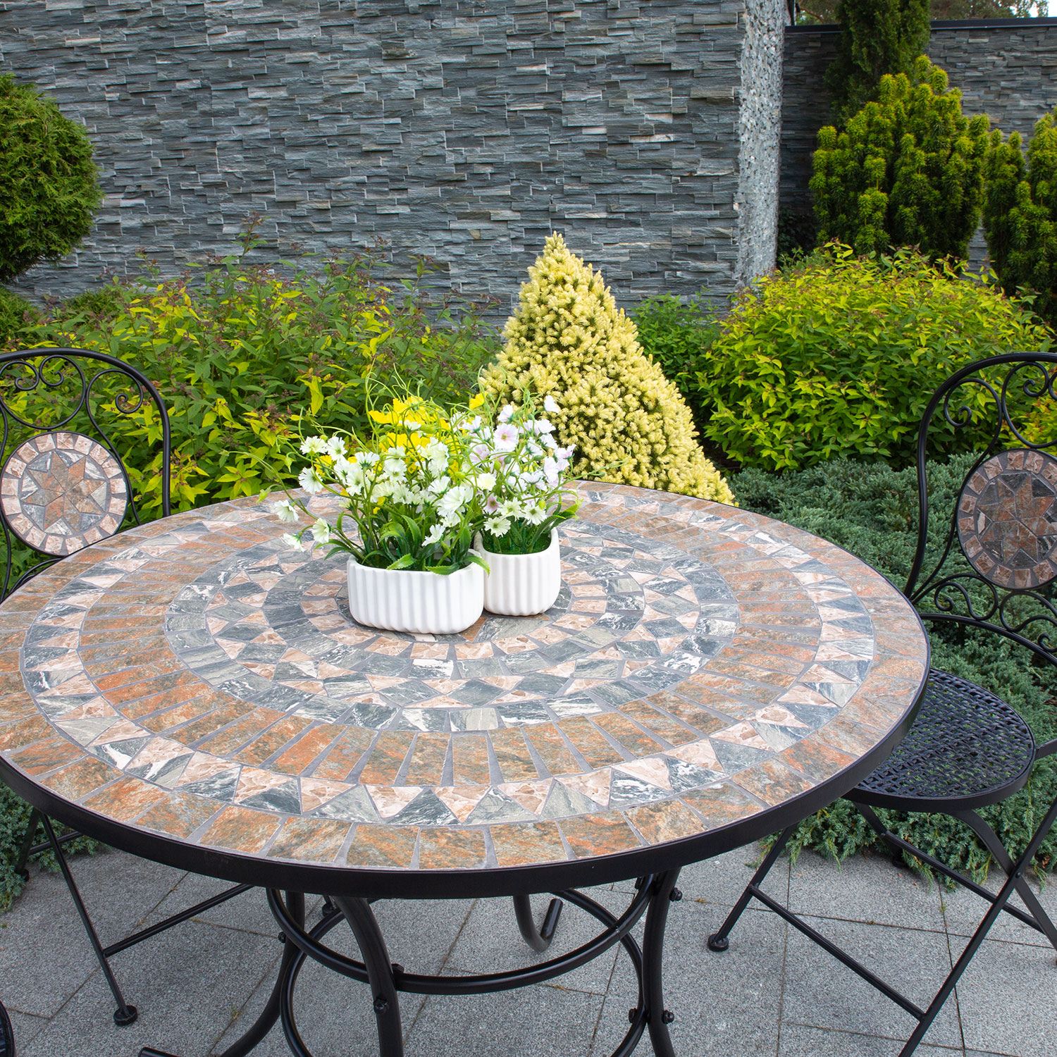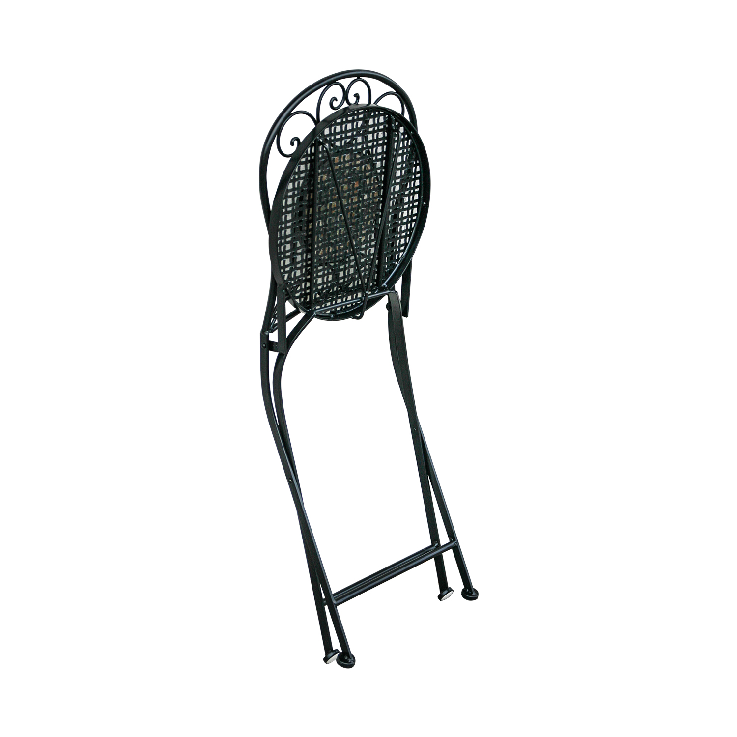 Įrankis MOSAIC sulankstomas. Kėdė pagaminta iš metalo ir nudažyta juodais milteliniais dažais. Atlošas dekoruotas rudų ir pilkų atspalvių mozaika. Kėdė yra sulankstoma. Bendrieji kėdės matmenys yra 40x51xH90 cm. Sėdimosios dalies plotis 38 cm, sėdimosios dalies gylis 38 cm, sėdimosios dalies aukštis 46 cm. Ribinis svoris 90 kg. Sulankstytos kėdės matmenys yra 40x103x11 cm.