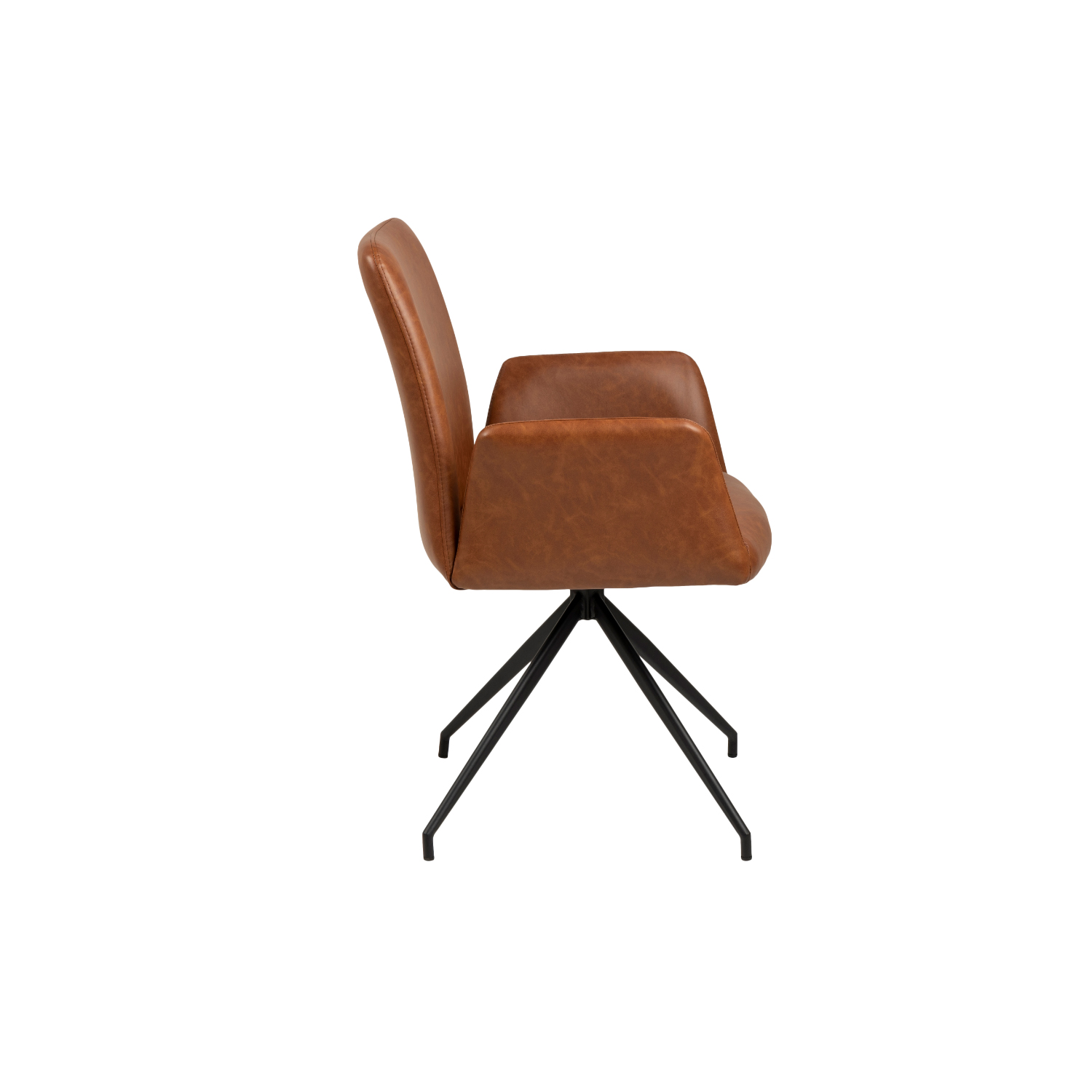 Įrankis NAYA 59x59xH88cm, su pasukimo funkcija. Sėdynės aukštis 47 cm. Audinys: PU retro brandy 691B, 100 % oda. Ribinis svoris: 110 kg.