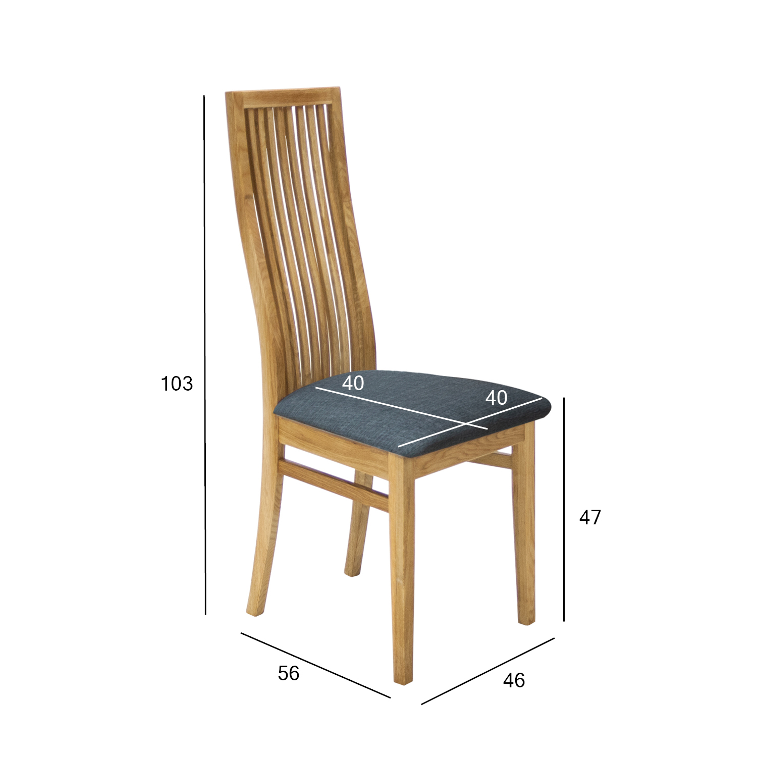 Įrankis RETRO 46x56xH103cm, pilkos spalvos. Kojos ir rėmas pagaminti iš ąžuolo masyvo. Minkšta sėdynė aptraukta pilku poliesterio audiniu. sėdynės aukštis 47 cm. Ribinis svoris 100 kg.