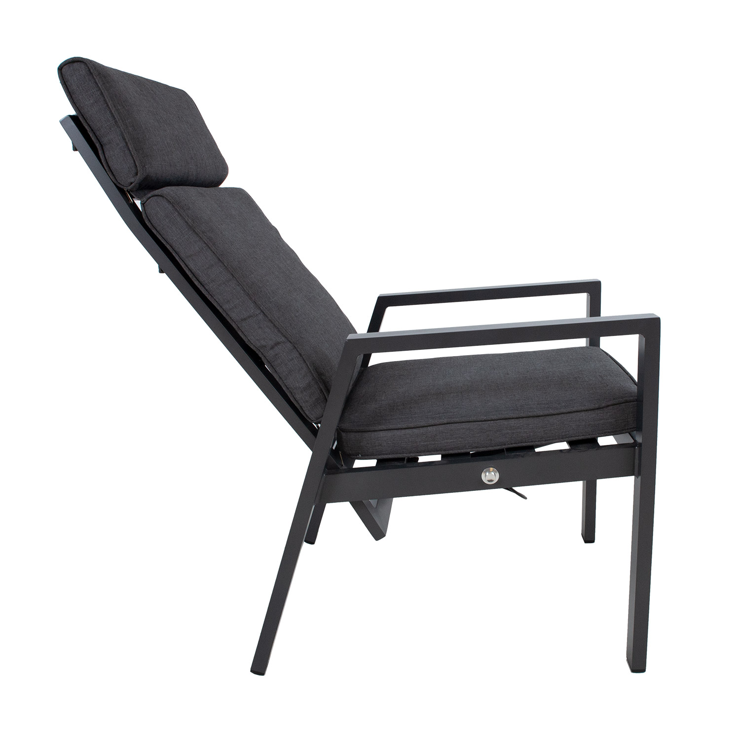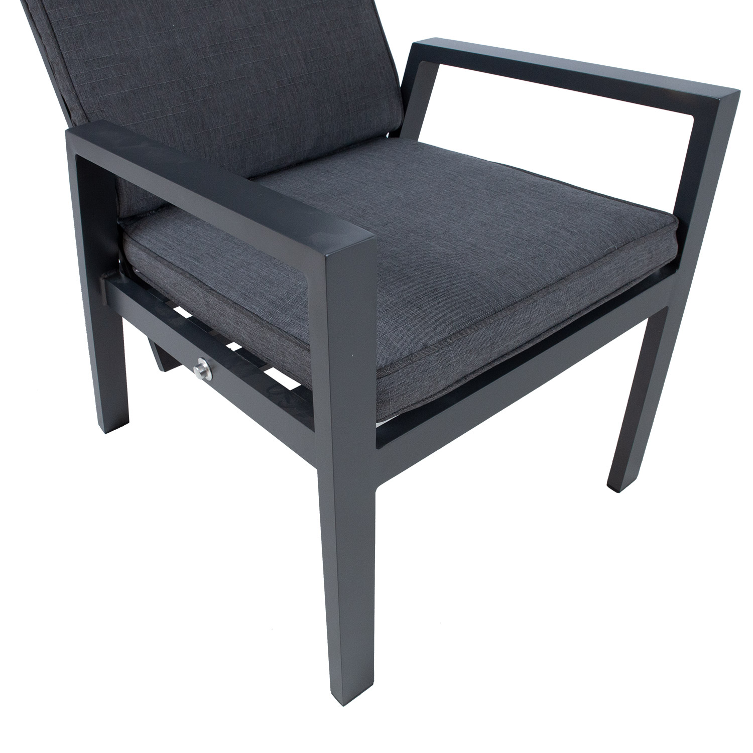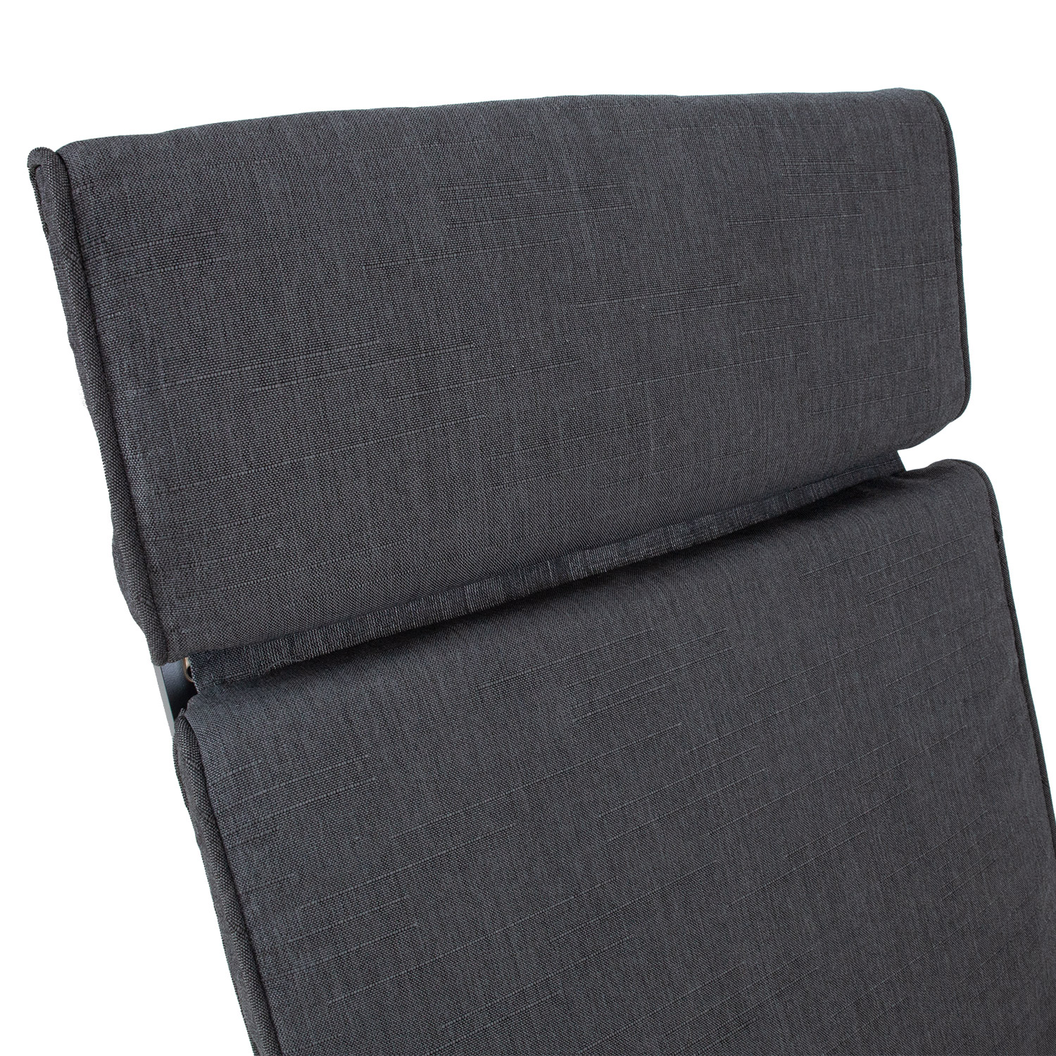 Kėdė TOMSON su reguliuojamu atlošu 61x69xH106cm, tamsiai pilka. Kėdės rėmas pagamintas iš aliuminio ir padengtas tamsiai pilka milteline danga. Kėdės atlošas reguliuojamas dujine virvele. Reguliavimo rankenėlė yra dešinėje kėdės sėdynės pusėje. Į komplektą įeina sėdynės pagalvėlė. Sėdynės pagalvėlės matmenys 122x51xH6 cm. Pagalvėlės užvalkalas pagamintas iš pilko olefino audinio. Pagalvėlės užvalkalą galima nuimti ir skalbti. Kėdės sėdimosios dalies plotis – 50 cm, sėdimosios dalies gylis – 48 cm, sėdimosios dalies aukštis – 40,5/46,5 cm. Porankio aukštis nuo žemės 61 cm. Ribinis svoris 120 kg. Gaminys labai patvarus kintamomis oro sąlygomis, jį lengva prižiūrėti. Tik pagalvėles reikia apsaugoti nuo atmosferos poveikio. PRIEŽIŪRA: pasibaigus vasaros sezonui, rekomenduojame sodo baldus laikyti patalpoje. Jeigu vasaros sezonui, sodo baldus reikėtų laikyti namuose. Prieš laikydami baldus išvalykite ir išdžiovinkite. Sandėliavimui naudokite sausą ir gerai vėdinamą patalpą.