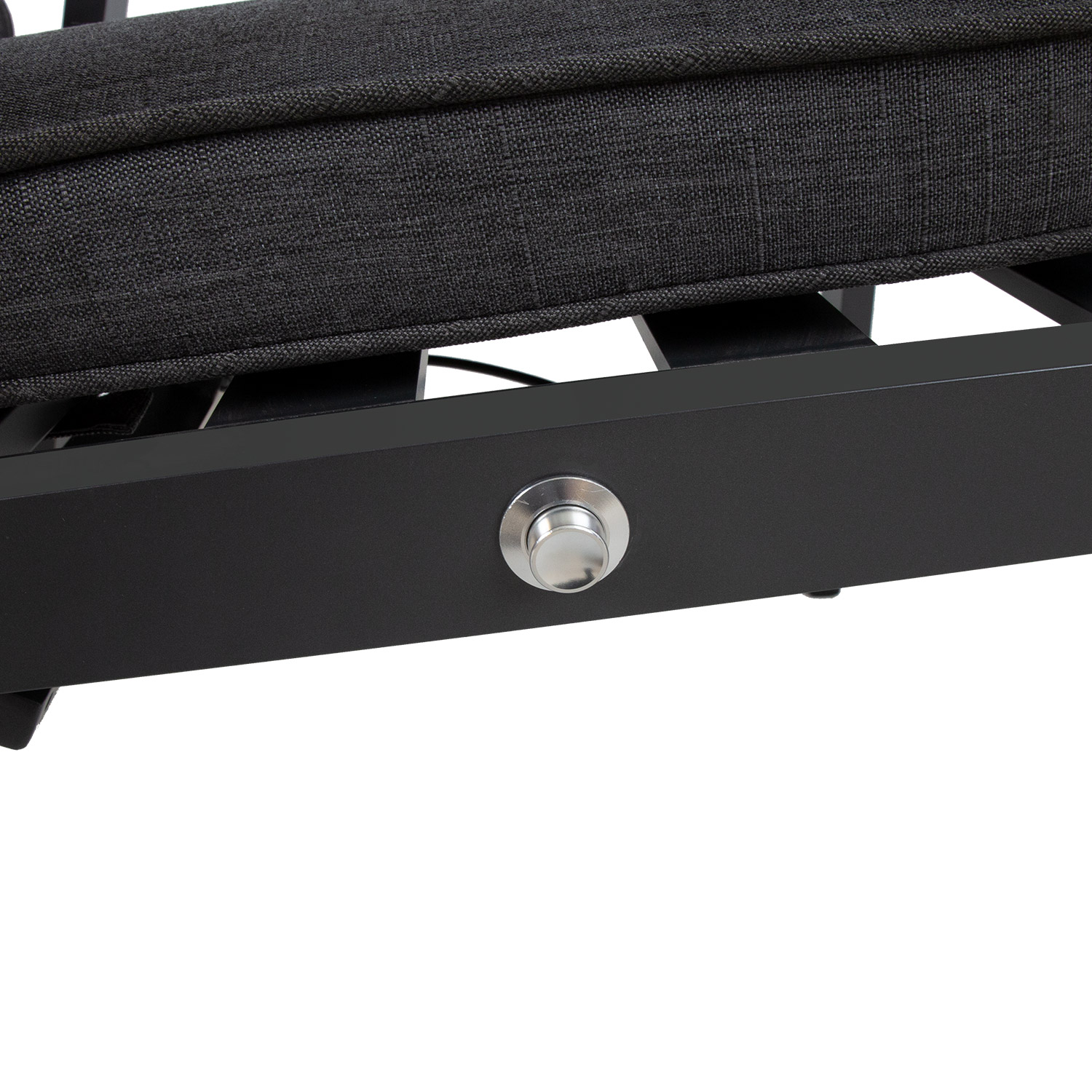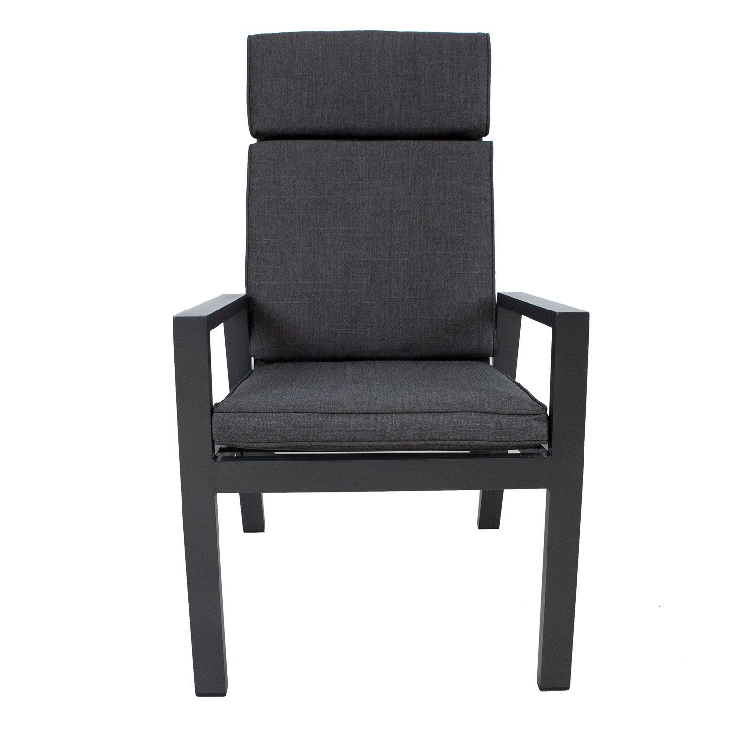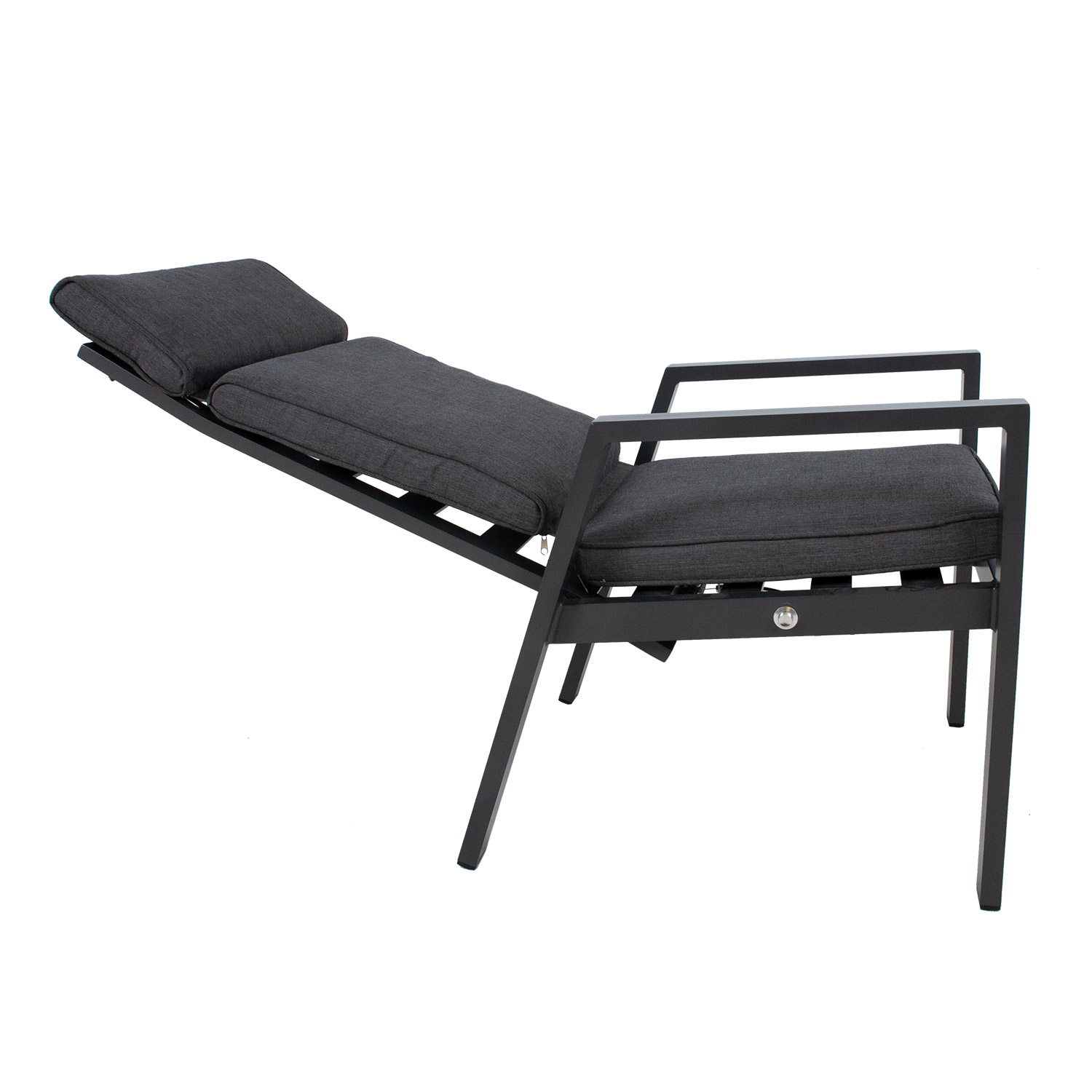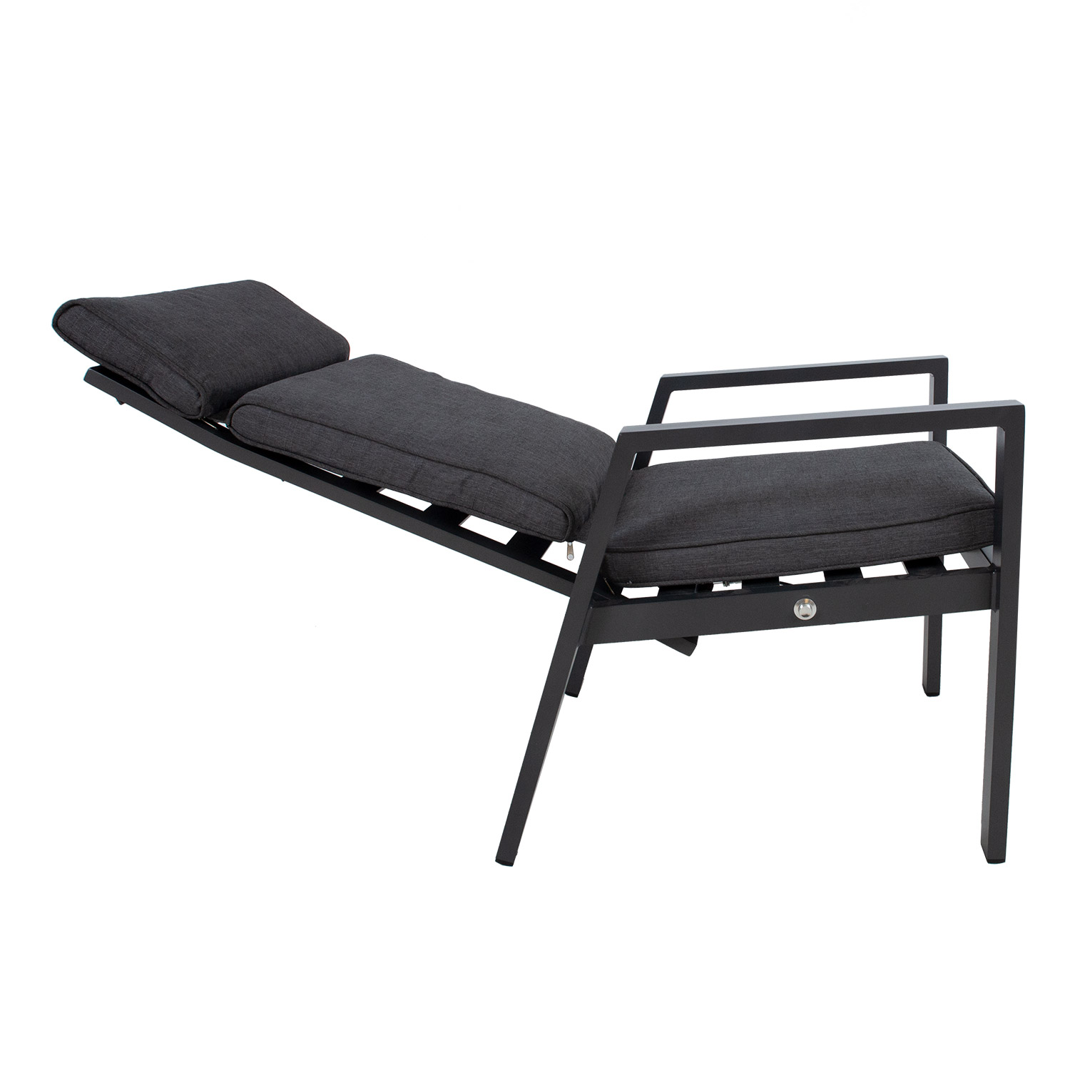 Kėdė TOMSON su reguliuojamu atlošu 61x69xH106cm, tamsiai pilka. Kėdės rėmas pagamintas iš aliuminio ir padengtas tamsiai pilka milteline danga. Kėdės atlošas reguliuojamas dujine virvele. Reguliavimo rankenėlė yra dešinėje kėdės sėdynės pusėje. Į komplektą įeina sėdynės pagalvėlė. Sėdynės pagalvėlės matmenys 122x51xH6 cm. Pagalvėlės užvalkalas pagamintas iš pilko olefino audinio. Pagalvėlės užvalkalą galima nuimti ir skalbti. Kėdės sėdimosios dalies plotis – 50 cm, sėdimosios dalies gylis – 48 cm, sėdimosios dalies aukštis – 40,5/46,5 cm. Porankio aukštis nuo žemės 61 cm. Ribinis svoris 120 kg. Gaminys labai patvarus kintamomis oro sąlygomis, jį lengva prižiūrėti. Tik pagalvėles reikia apsaugoti nuo atmosferos poveikio. PRIEŽIŪRA: pasibaigus vasaros sezonui, rekomenduojame sodo baldus laikyti patalpoje. Jeigu vasaros sezonui, sodo baldus reikėtų laikyti namuose. Prieš laikydami baldus išvalykite ir išdžiovinkite. Sandėliavimui naudokite sausą ir gerai vėdinamą patalpą.