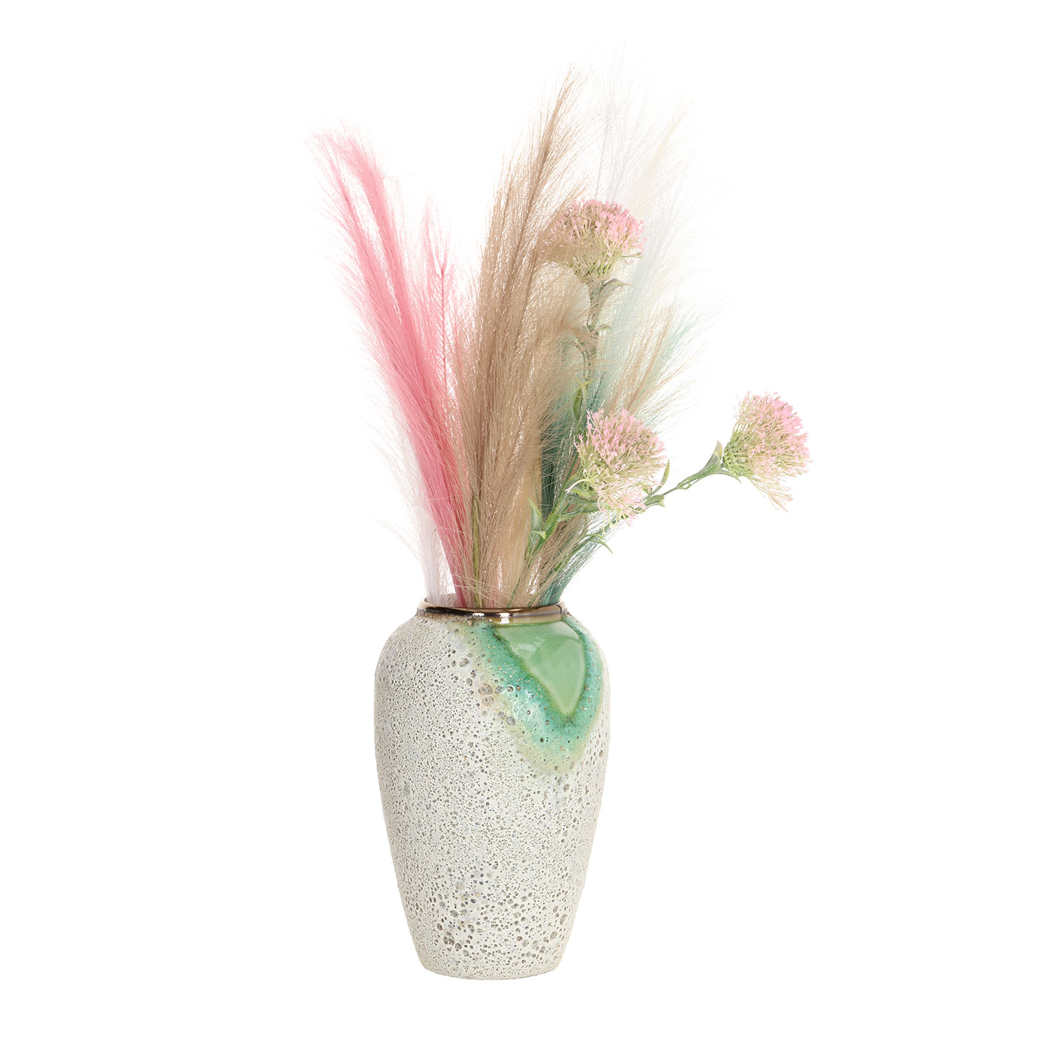 Keraminė vaza TITAN STONE H27cm, žalios/baltos tekstūros