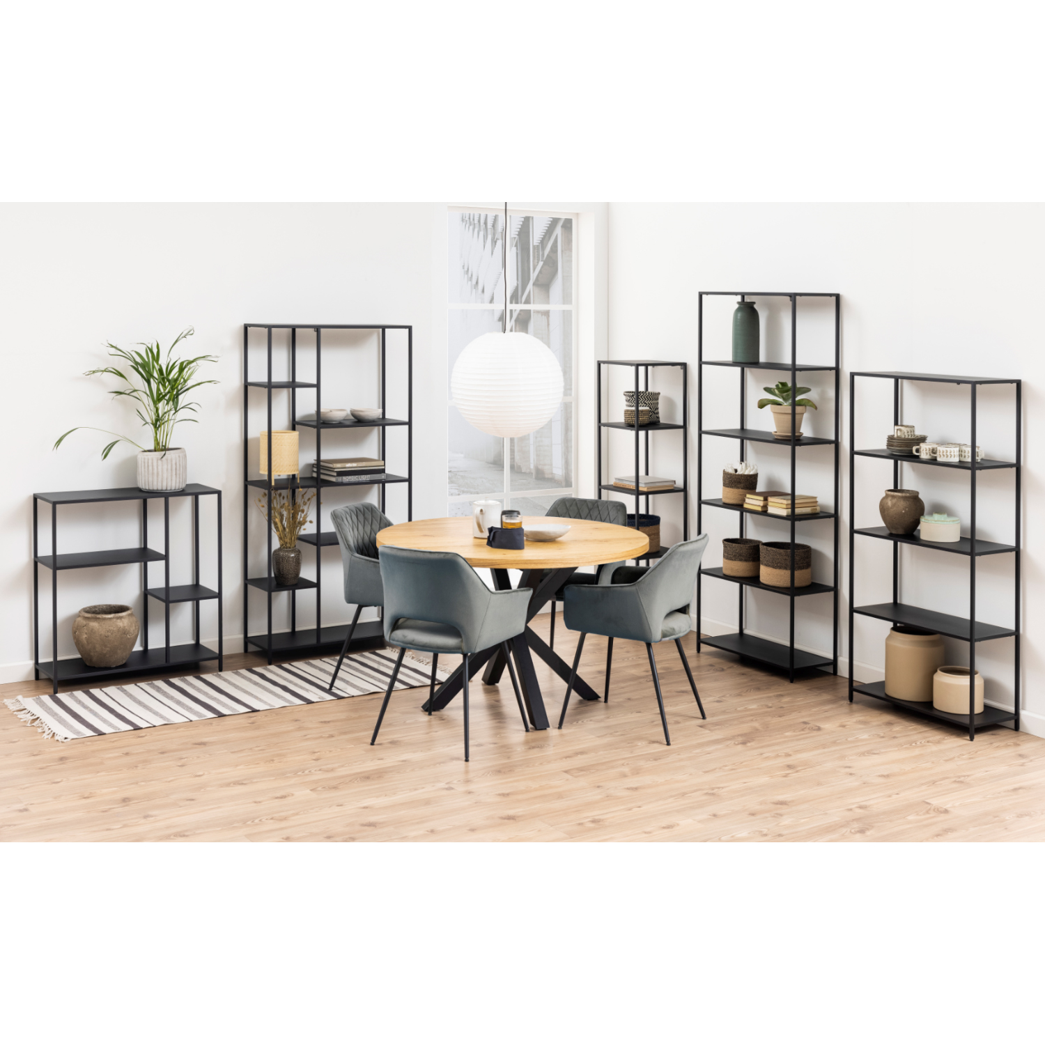 Lentyna NEWCASTLE, su 6 lentynomis, 79,5x30xH165cm. Medžiaga: metalas, matinės juodos spalvos.