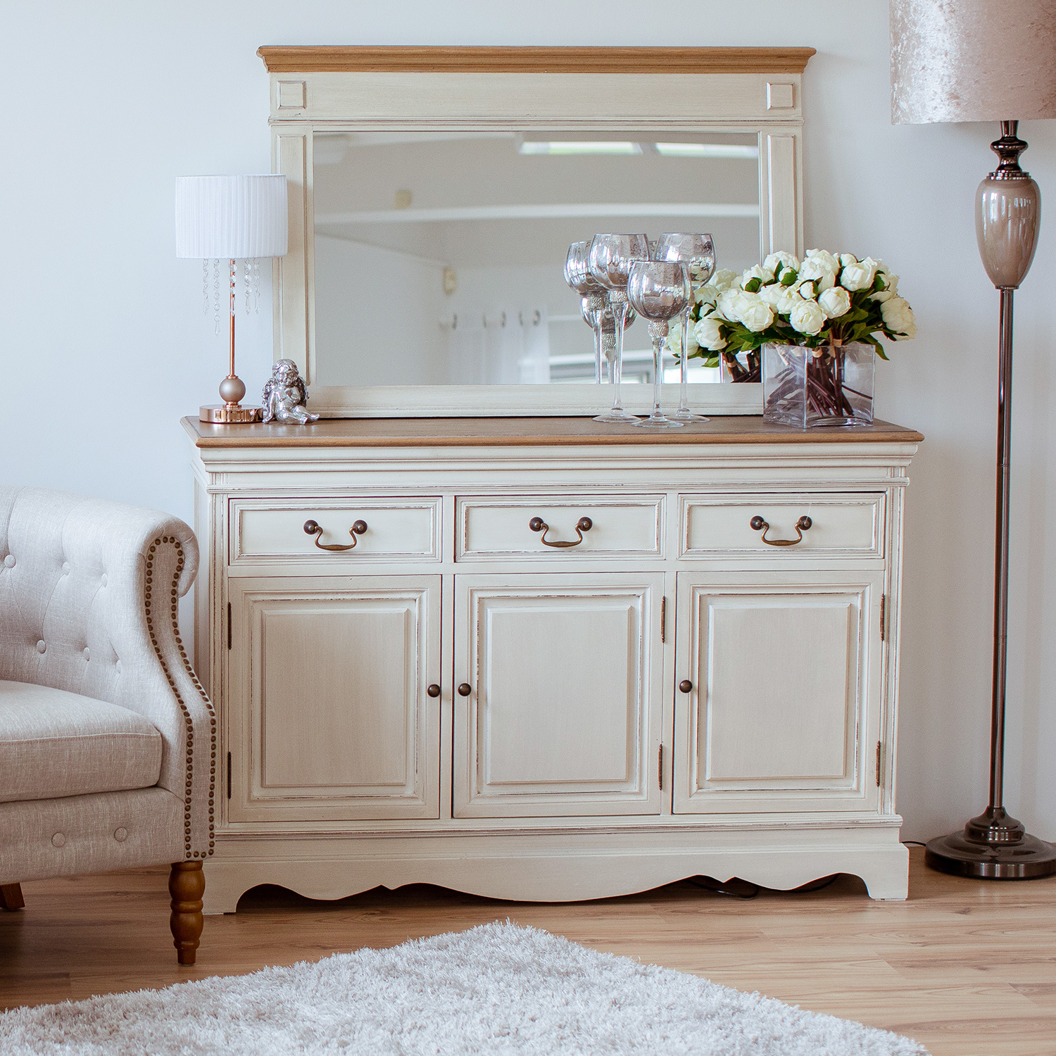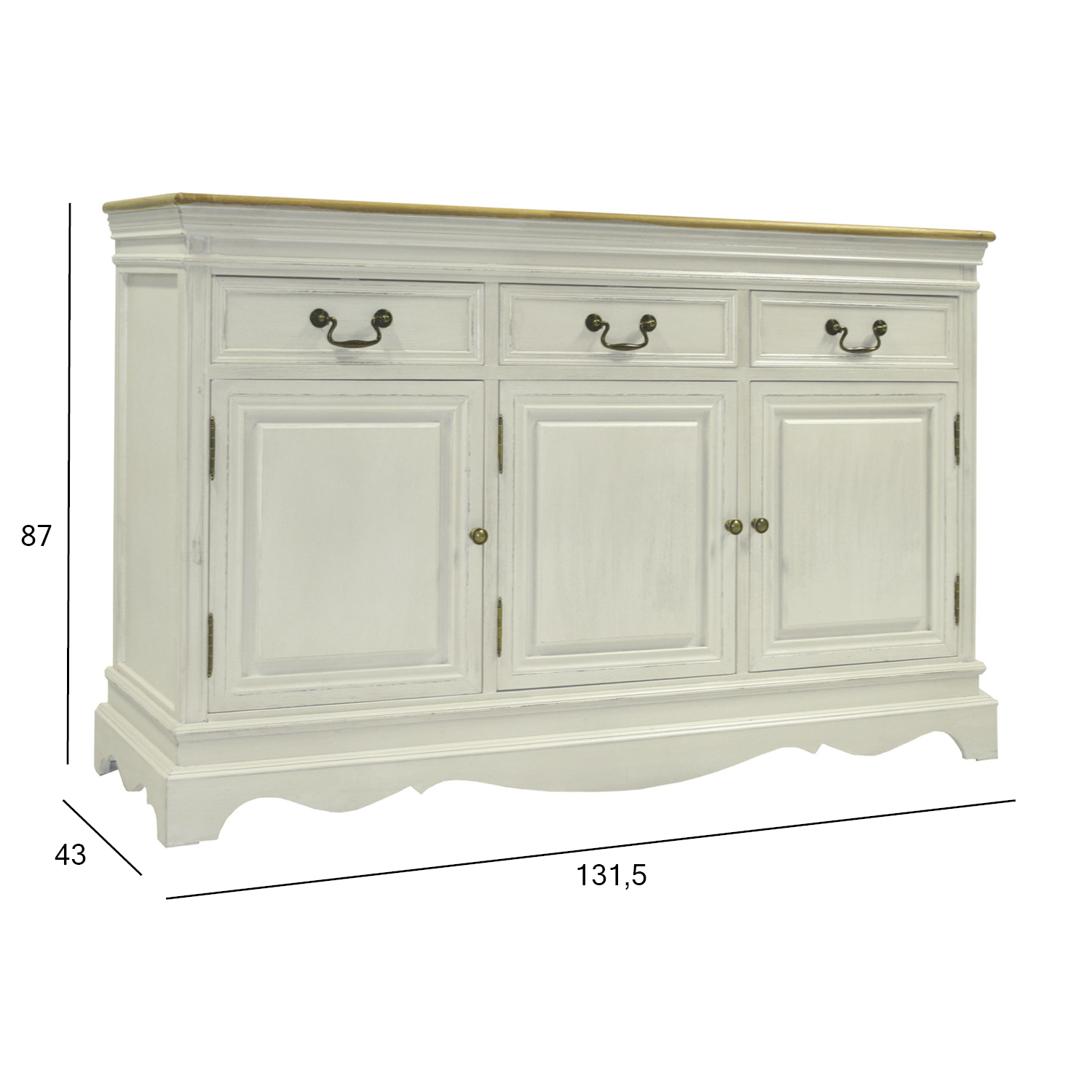 Komoda SAMIRA 131,5x43xH87cm, antikinė balta/natūrali