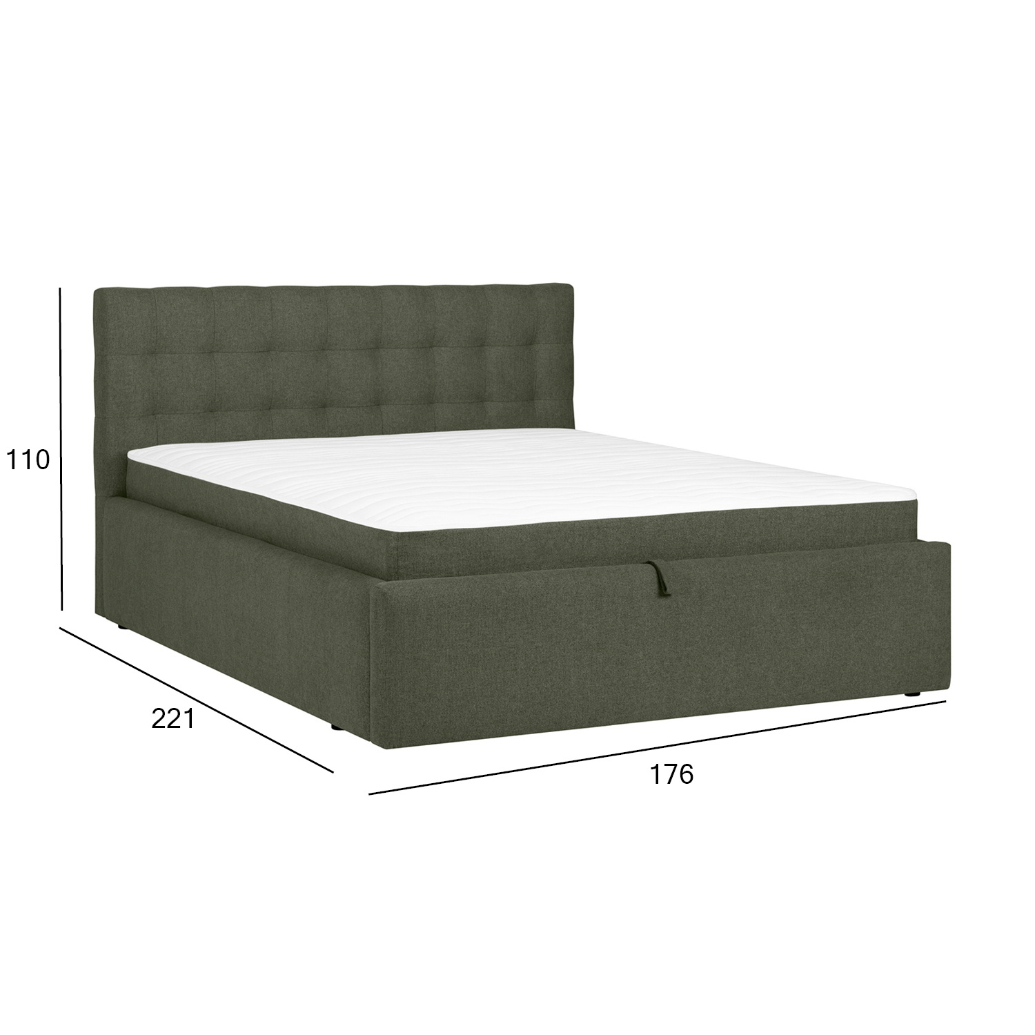 Kontinentinė lova LEENA 160×200 cm, su čiužiniu, žalios spalvos. Į komplektą įeina 7 zonų kišeninis spyruoklinis čiužinys (250 spyruoklių/m2). Čiužinio standumas: standus. Lova turi praktišką daiktadėžę su metaliniu pakėlimo mechanizmu. Lovos gylis – 26 cm. Lovos rėmas pagamintas iš medžio drožlių plokštės ir didelio tankio medienos plaušo plokštės. Rėmas aptrauktas poliesterio audiniu „Martindale 115 000”. Lovos kojelės pagamintos iš medžio masyvo ir yra 2,5 cm aukščio. Į komplektą įeina poliesterio audiniu aptrauktas galvūgalis. Į komplektą įeina tvirtinimo elementai. Čiužinio matmenys 160×200 cm. Gaminio matmenys 176x221xH110 cm. Gaminys pagamintas ES.