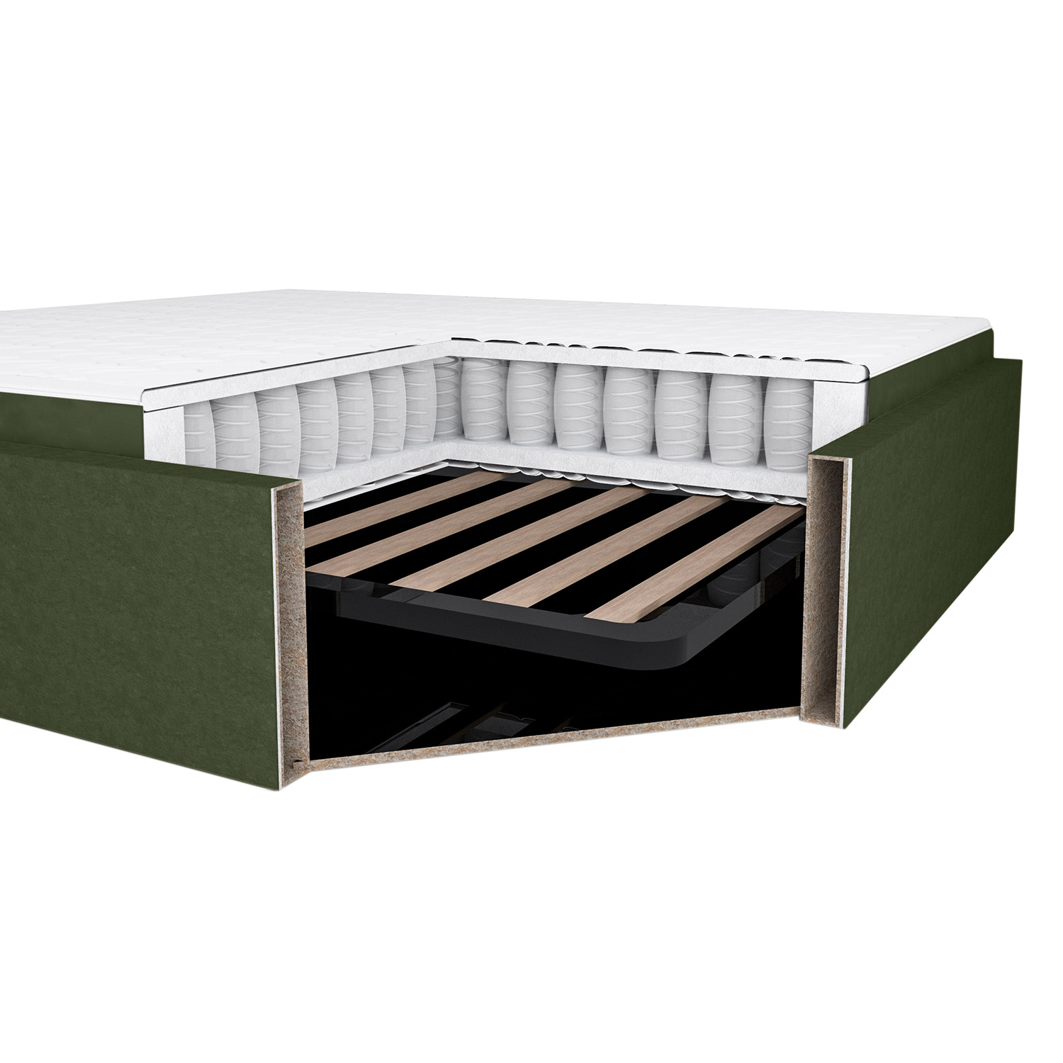 Kontinentinė lova LEENA 160×200 cm, su čiužiniu, žalia