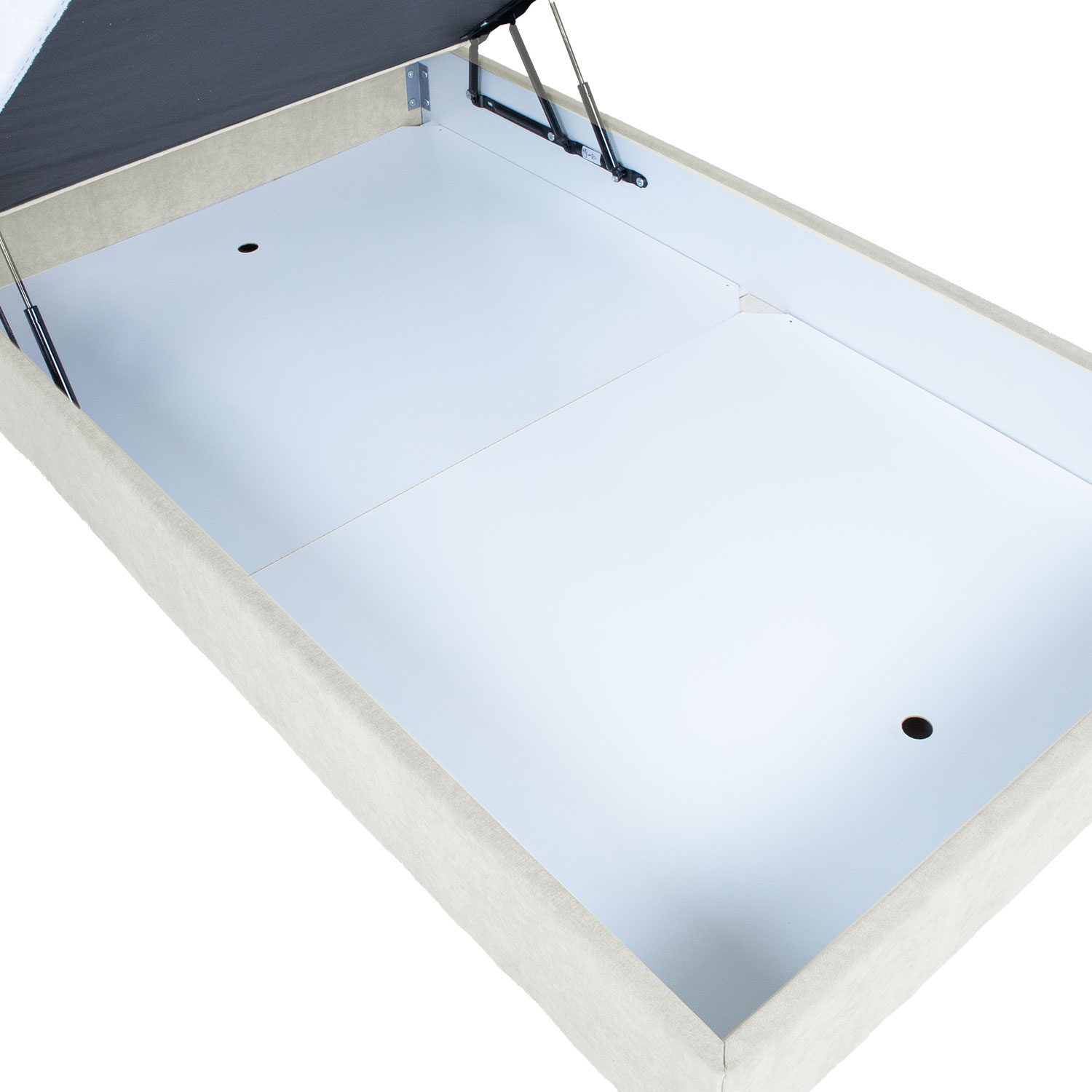Lovoje yra kišeninis spyruoklinis čiužinys, 210 spyruoklių/m2. Spyruoklių aukštis – 13 cm. Spyruoklės padengtos 2 cm storio 23 kg/m3 porolono sluoksniu. Čiužinio standumas: standus. Čiužinio užvalkalas pagamintas iš 23 kg/m3 porolono. Čiužinys aptrauktas 200 g/m2 poliesterio satino užvalkalu. Po lova yra didelė daiktadėžė, pagaminta iš medžio masyvo ir laminuotos medžio drožlių plokštės. Jos šonai padengti porolonu. Lovos rėmas pagamintas iš medžio masyvo. Lovos rėmas aptrauktas audiniu. Į komplektą įeina tokio pat pločio kaip ir lova lovos galvūgalio stalviršis. Lovos galvūgalio storis – 7 cm. Komplekte yra jungtys galvūgaliui prie lovos pritvirtinti. Lova turi keturias plastikines juodos spalvos kojeles. Lovos kojelių aukštis – 2,5 cm, čiužinio užvalkalo aukštis – 4 cm, čiužinio aukštis – 16 cm. Lovos aukštis – 52 cm. Gaminio matmenys 123x210xH114,5 cm. Gaminys pagamintas ES.