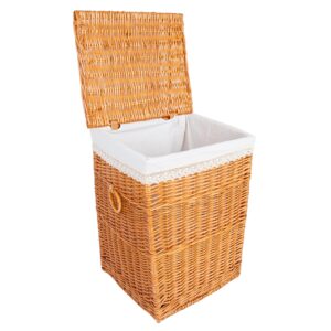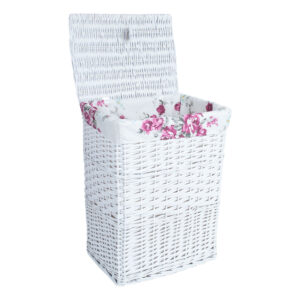 Krepšelio medžiaga: natūrali pintinė, lakuota. Tekstilės pamušalas: medvilnė su nėriniais.