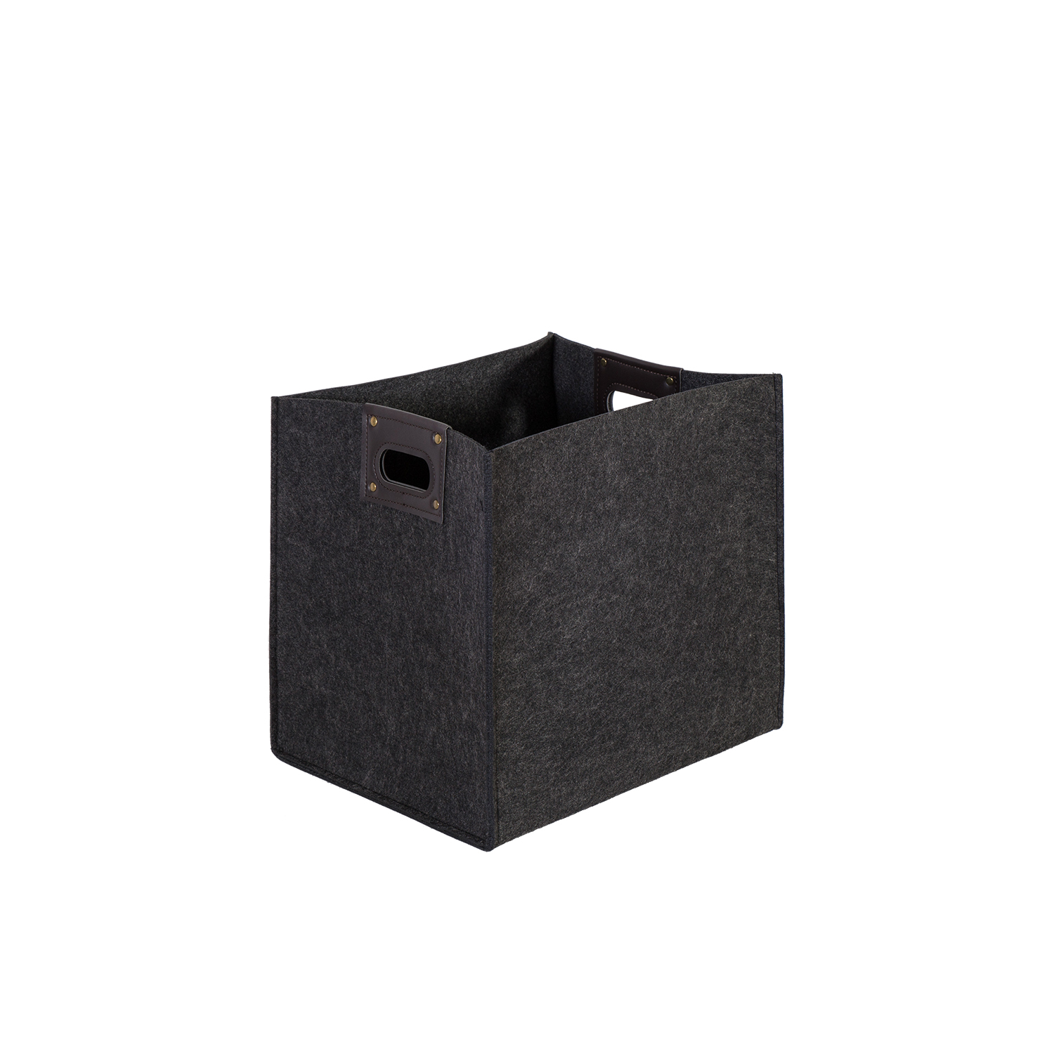 Dėžutė MAX FELT-4, 28x22x28 cm, tamsiai pilka. Medžiaga: veltinis, odinės rankenos.