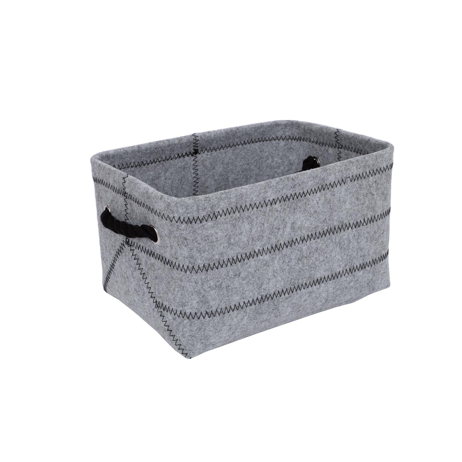 Dėžutė MAX FELT-4, 32x23x18 cm, šviesiai pilka. Medžiaga: veltinis, juodos virvinės rankenos.
