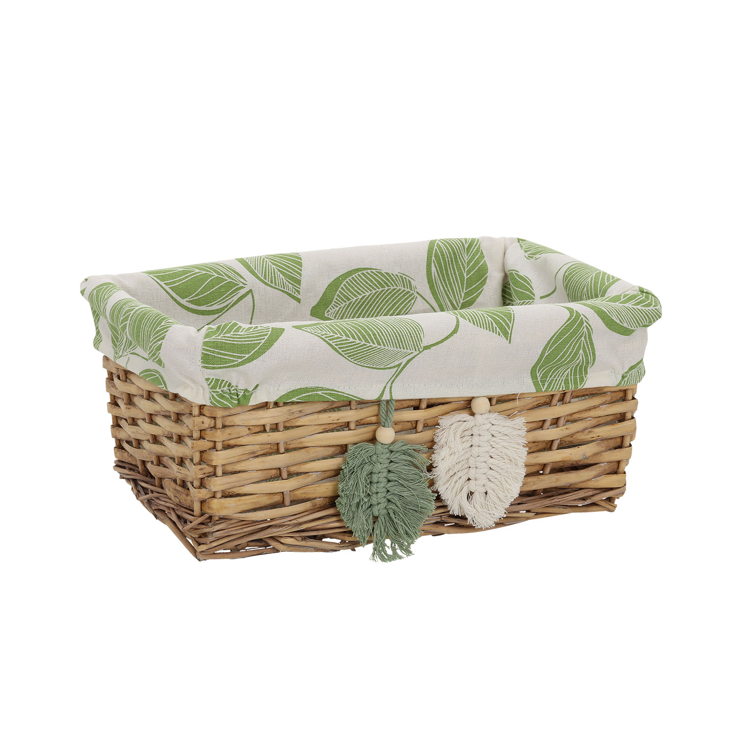 Tekstilės pamušalas: medvilninis audinys su žaliais lapais.
