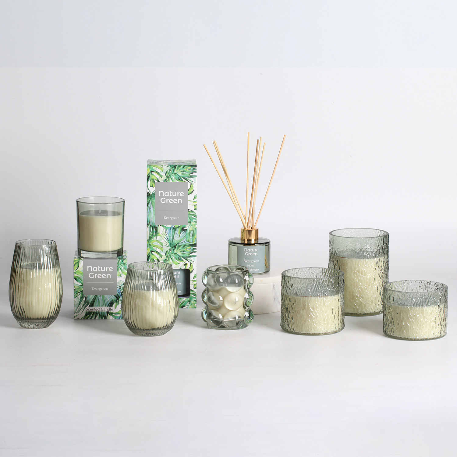 Kvapnioji žvakė stiklinėje dėžutėje NATURE GREEN H13cm, Evergreen