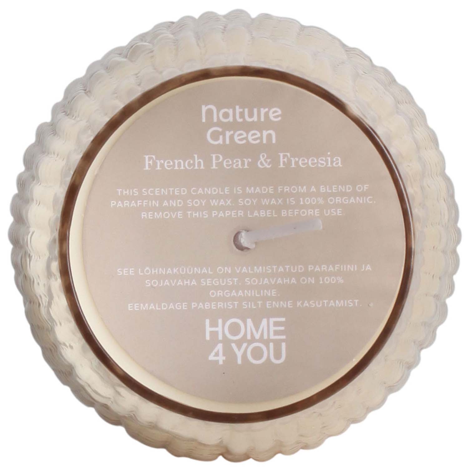 Kvapnioji žvakė stiklinėje NATURE GREEN H10,8cm, prancūziška kriaušė ir frezijos