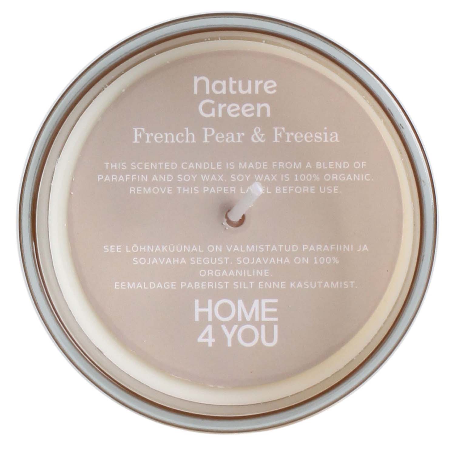 Kvapnioji žvakė stiklinėje NATURE GREEN H9,5cm, prancūziška kriaušė ir frezijos